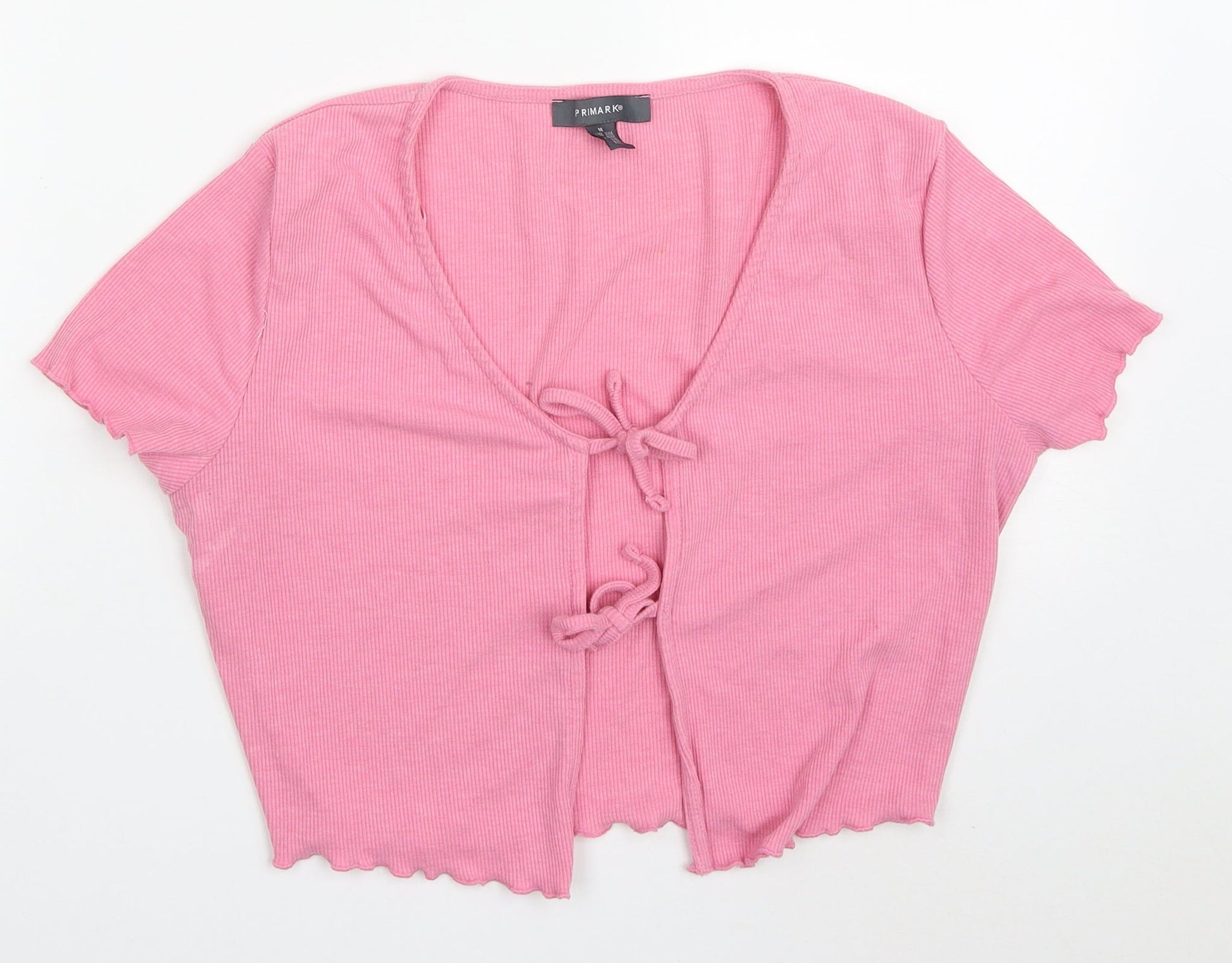 Primark Womens Pink V-Neck Polyester Cardigan Jumper Size 12