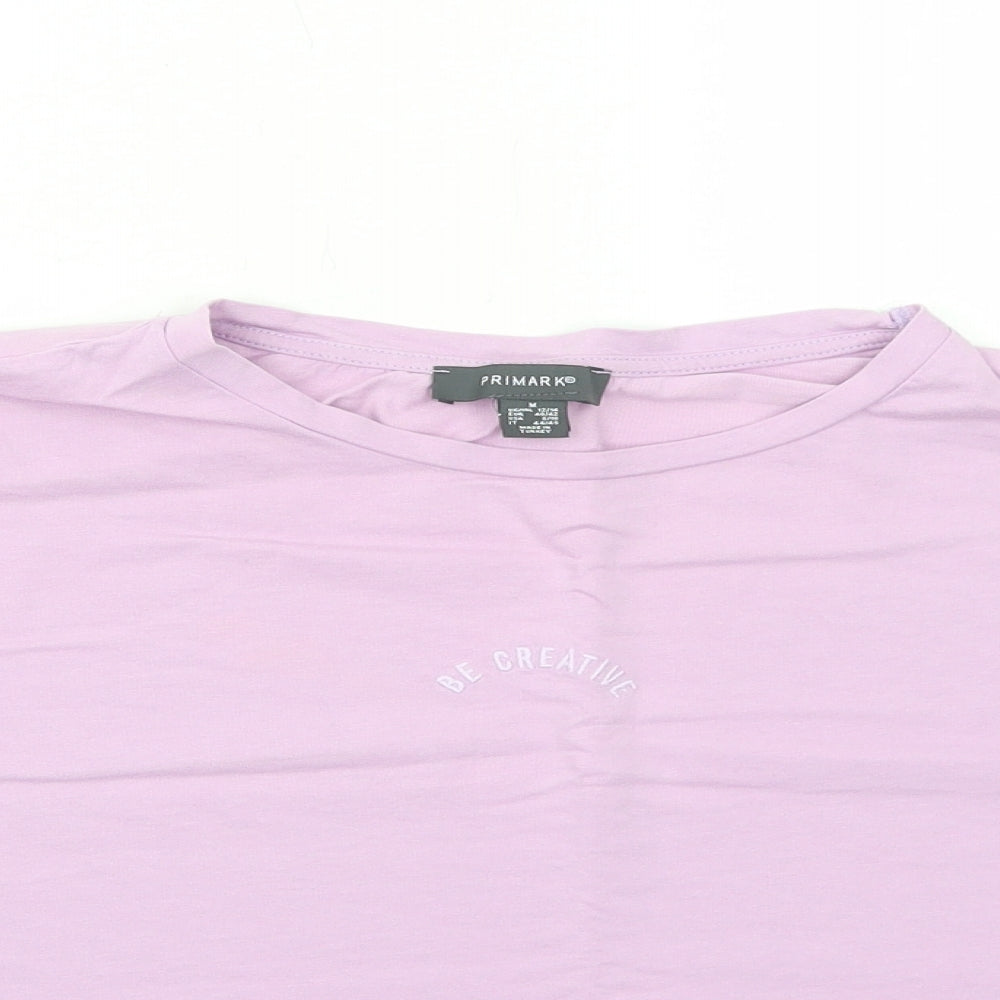 Primark Womens Purple Cotton Cropped T-Shirt Size M Round Neck