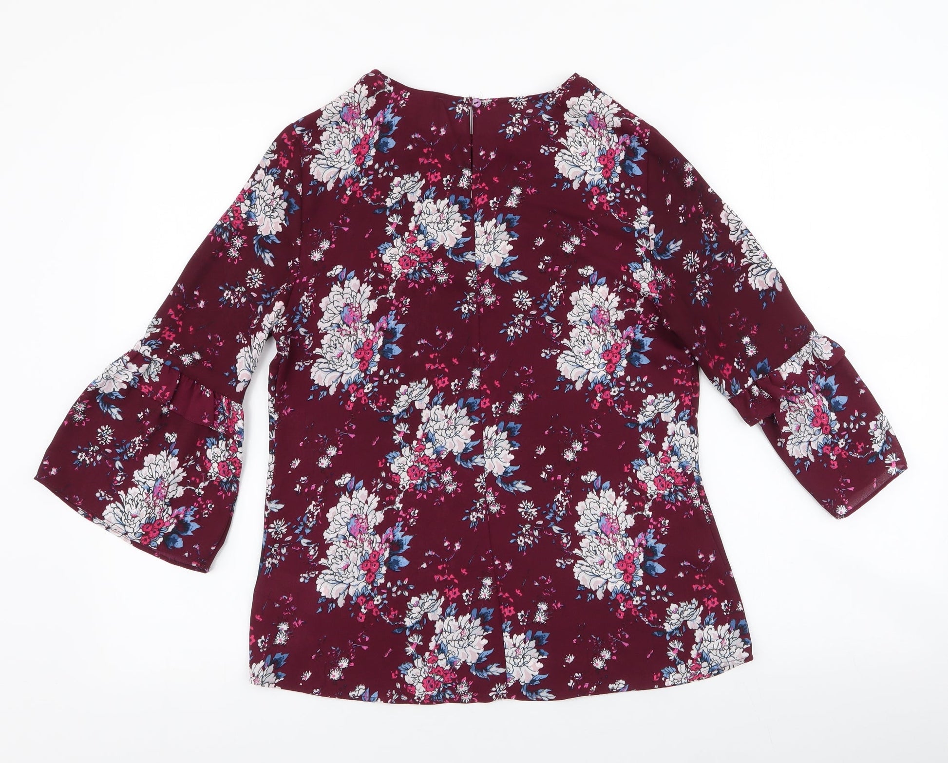Primark Womens Purple Floral Polyester Basic Blouse Size 8 Round Neck