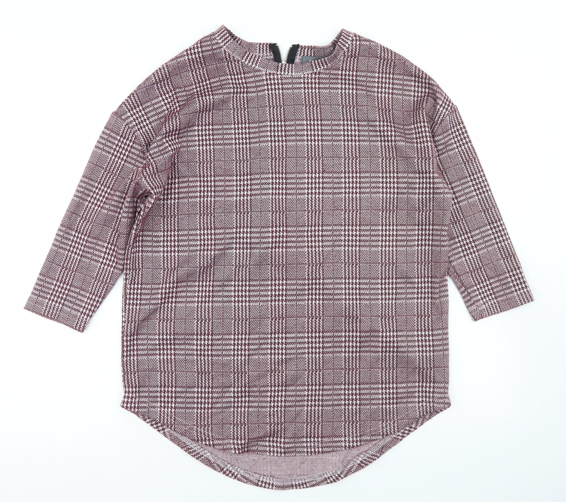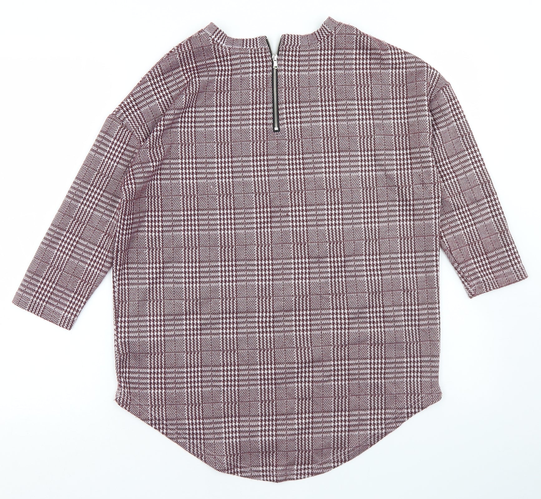 Primark Womens Purple Houndstooth Polyester Basic T-Shirt Size 2XS Round Neck
