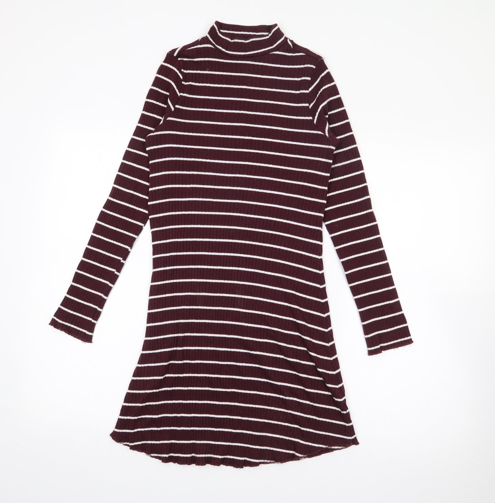 Primark Womens Purple Striped Cotton Jumper Dress Size 8 Roll Neck