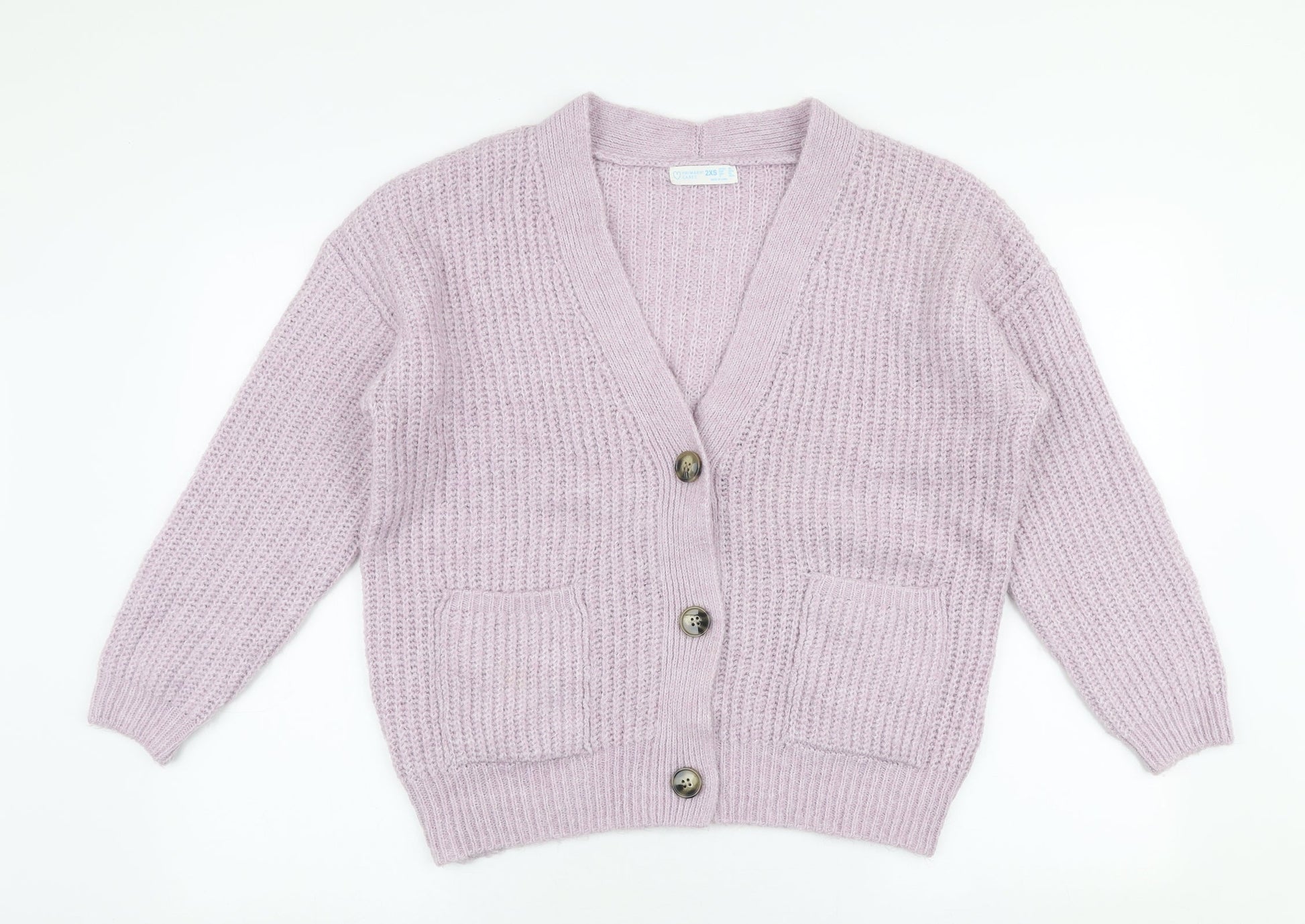 Primark Womens Purple V-Neck Acrylic Cardigan Jumper Size 2XS