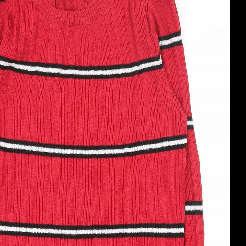 Primark Womens Red Crew Neck Striped Polyester Pullover Jumper Size 12