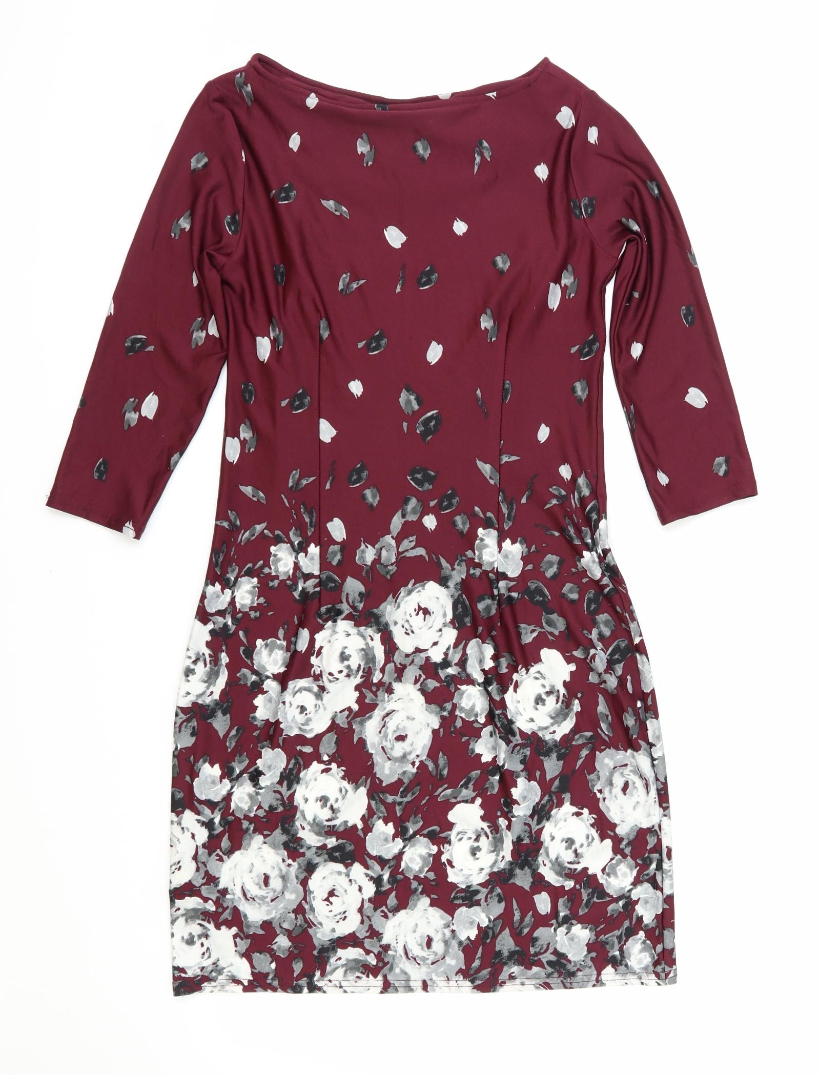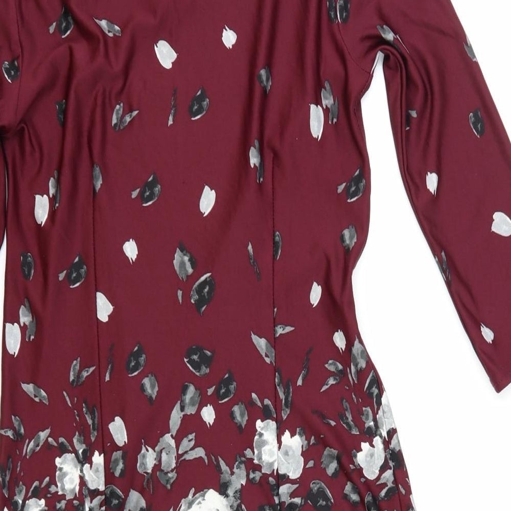Primark Womens Red Floral Polyester A-Line Size 8 Boat Neck Pullover