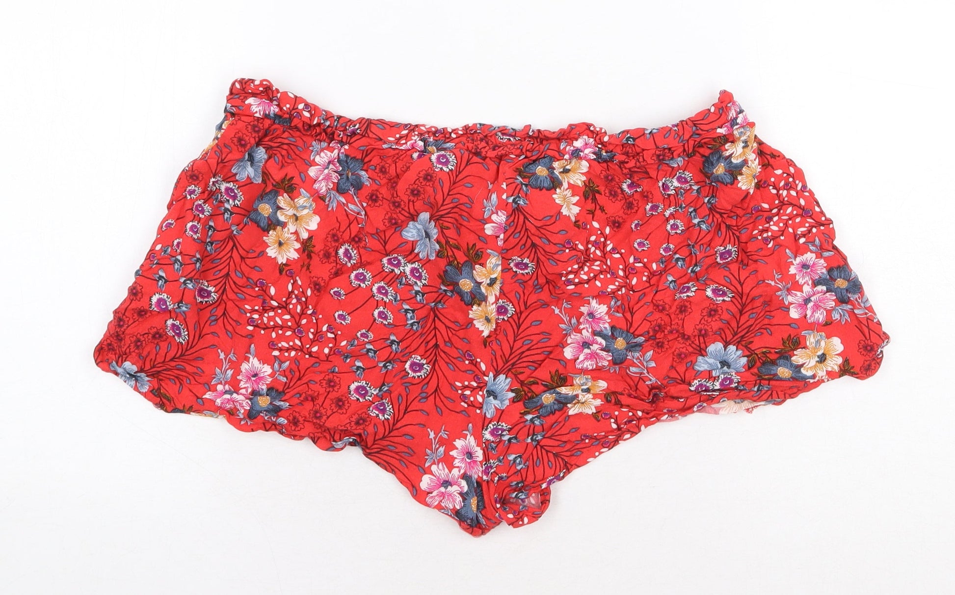Primark Womens Red Floral Viscose Paperbag Shorts Size 10 Regular Tie