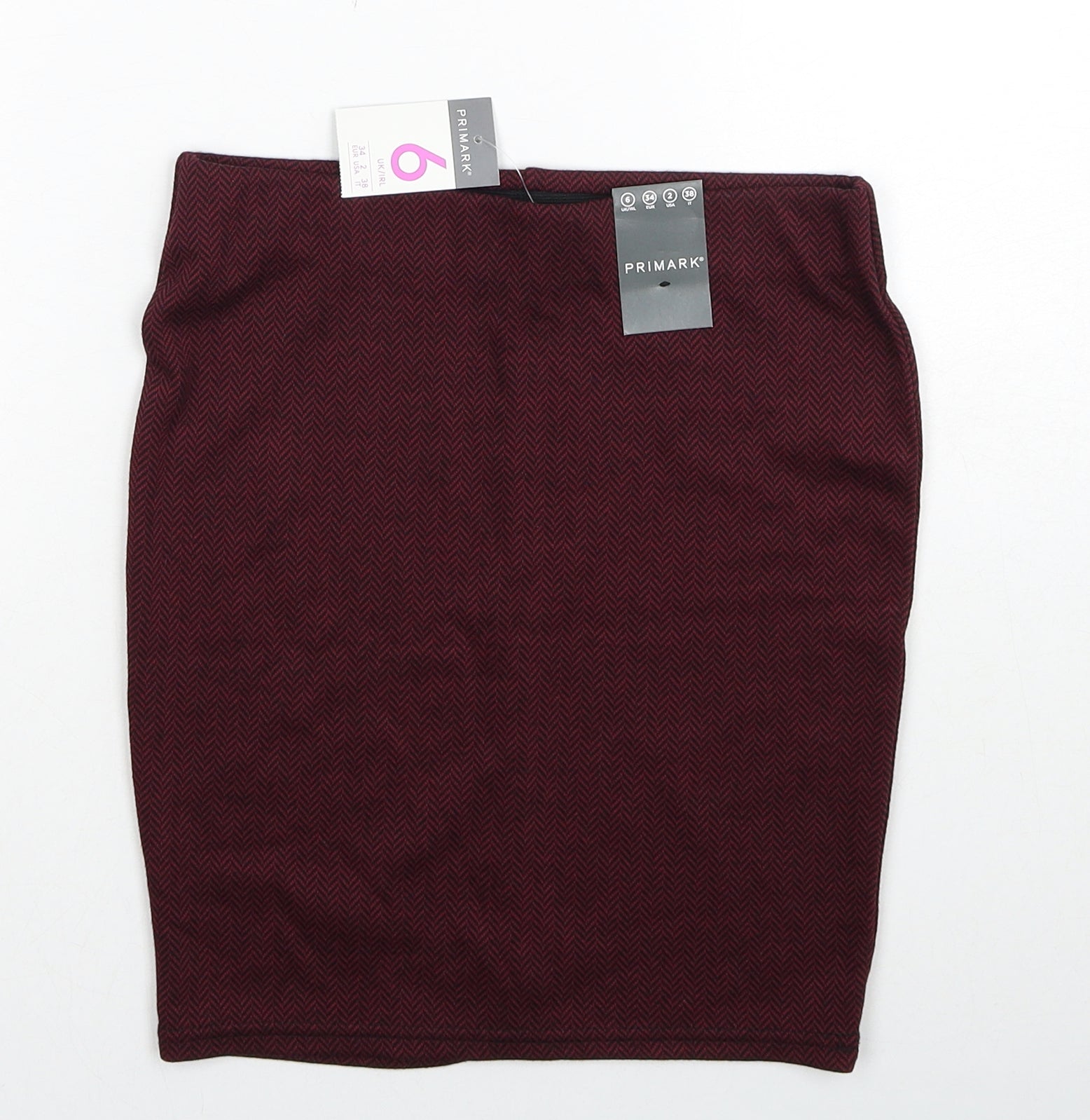 Primark Womens Red Geometric Polyester Straight & Pencil Skirt Size 6