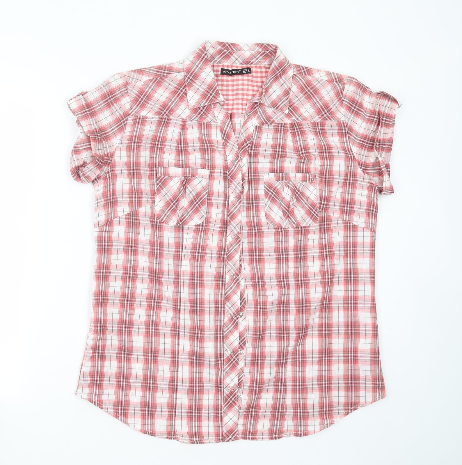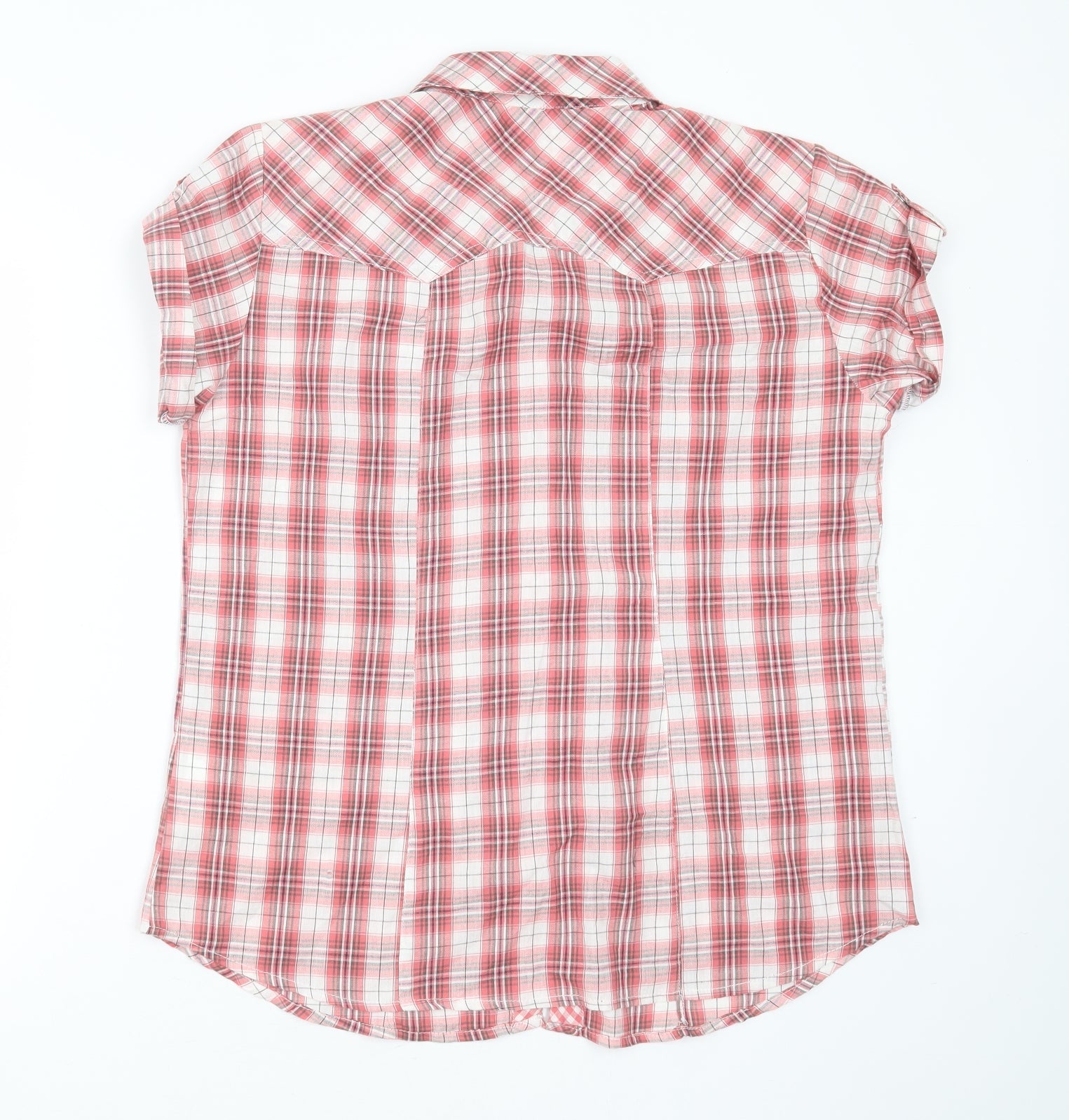 Primark Womens Red Plaid Cotton Basic Button-Up Size 8 Collared