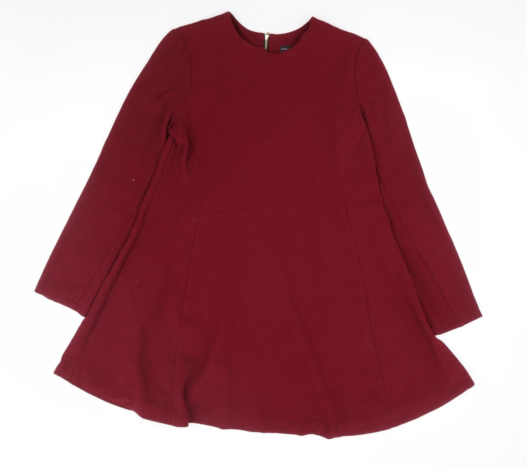 Primark Womens Red Polyester A-Line Size 8 Round Neck Zip