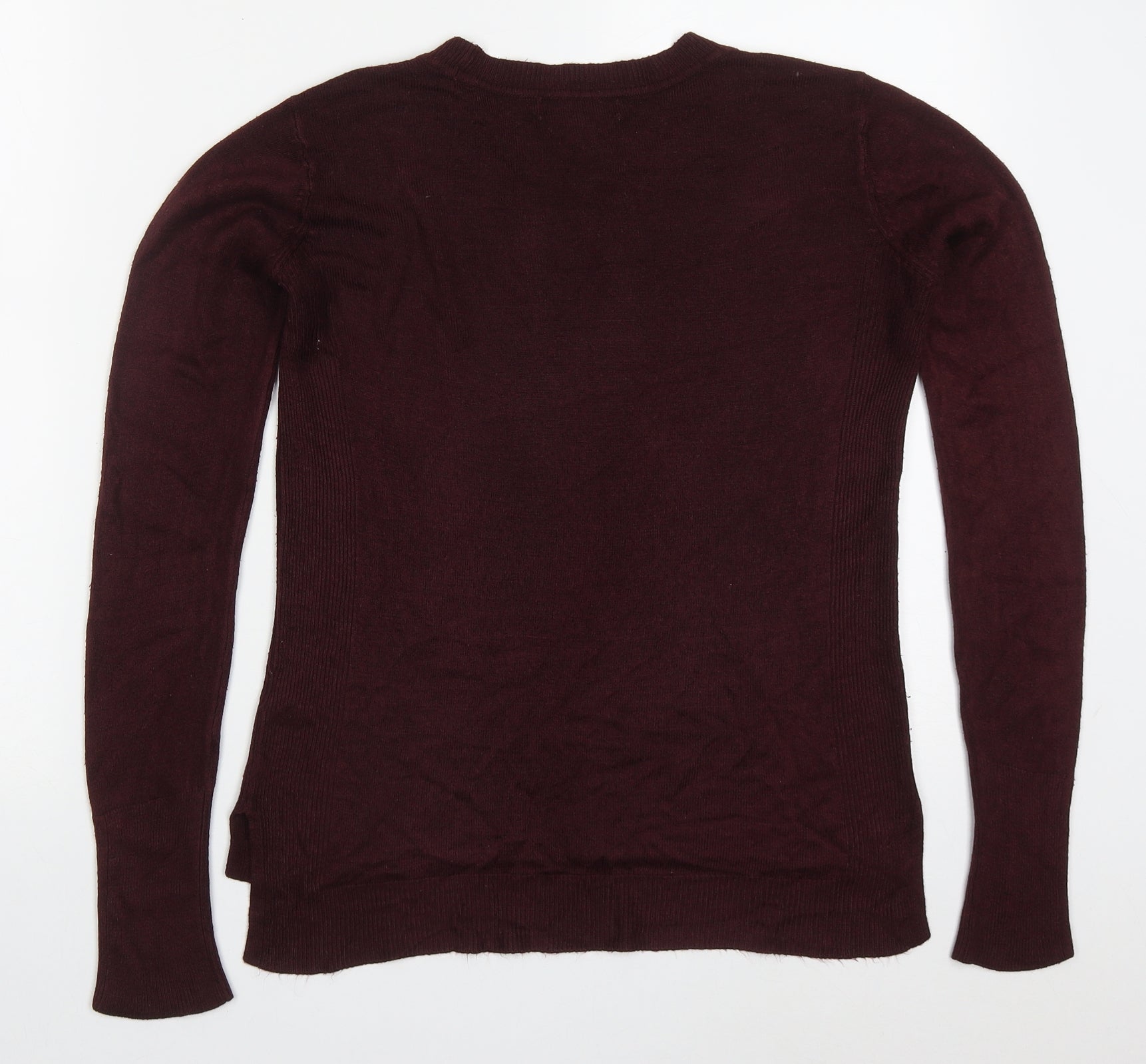 Primark Womens Red Round Neck Acrylic Pullover Jumper Size 4 - Burgundy