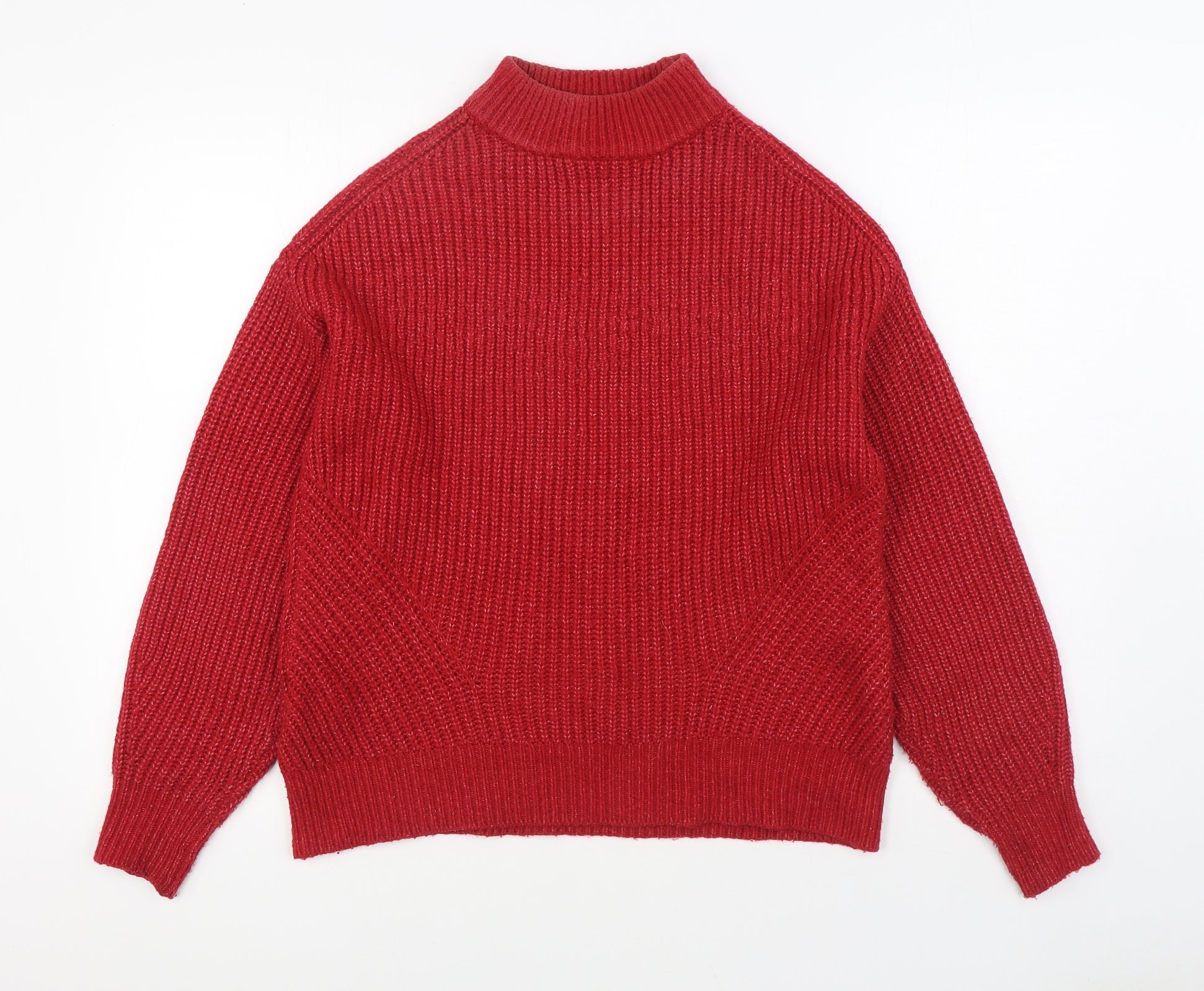 Primark Womens Red Round Neck Acrylic Pullover Jumper Size S