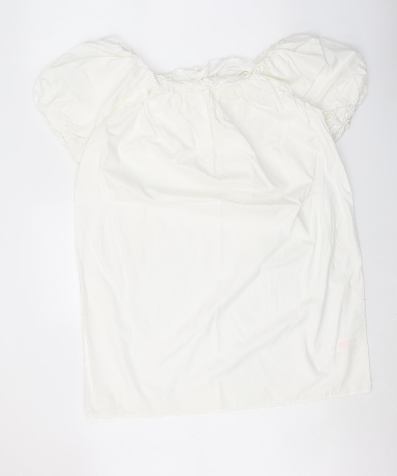 Primark Womens White 100% Cotton A-Line Size 12 Square Neck Pullover