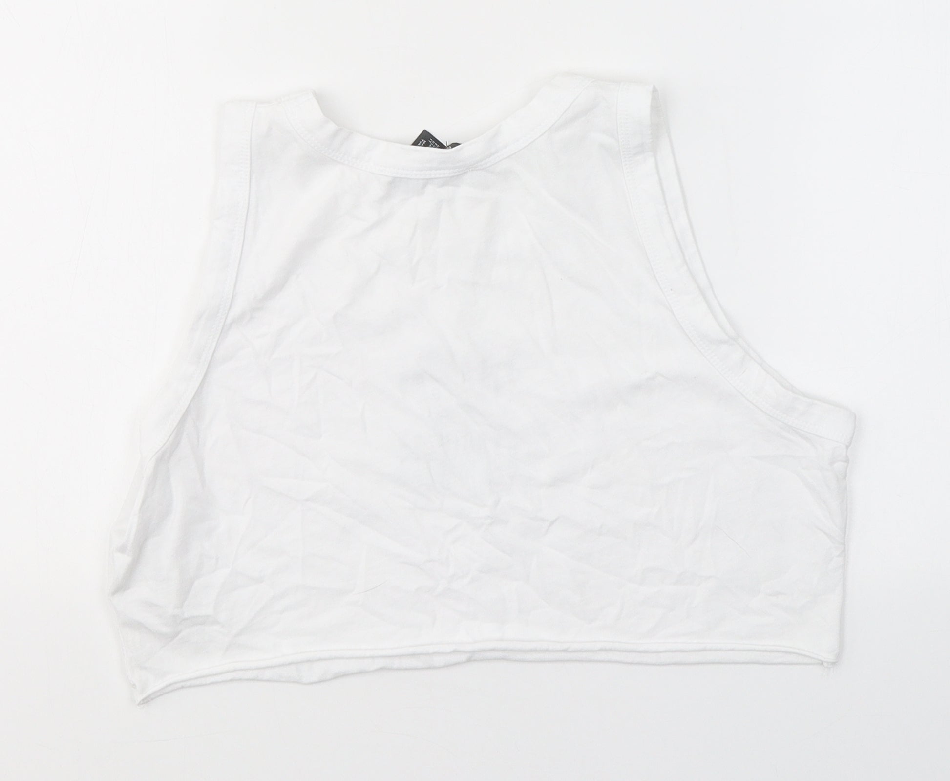 Primark Womens White 100% Cotton Cropped T-Shirt Size S Round Neck - Everyday happiness