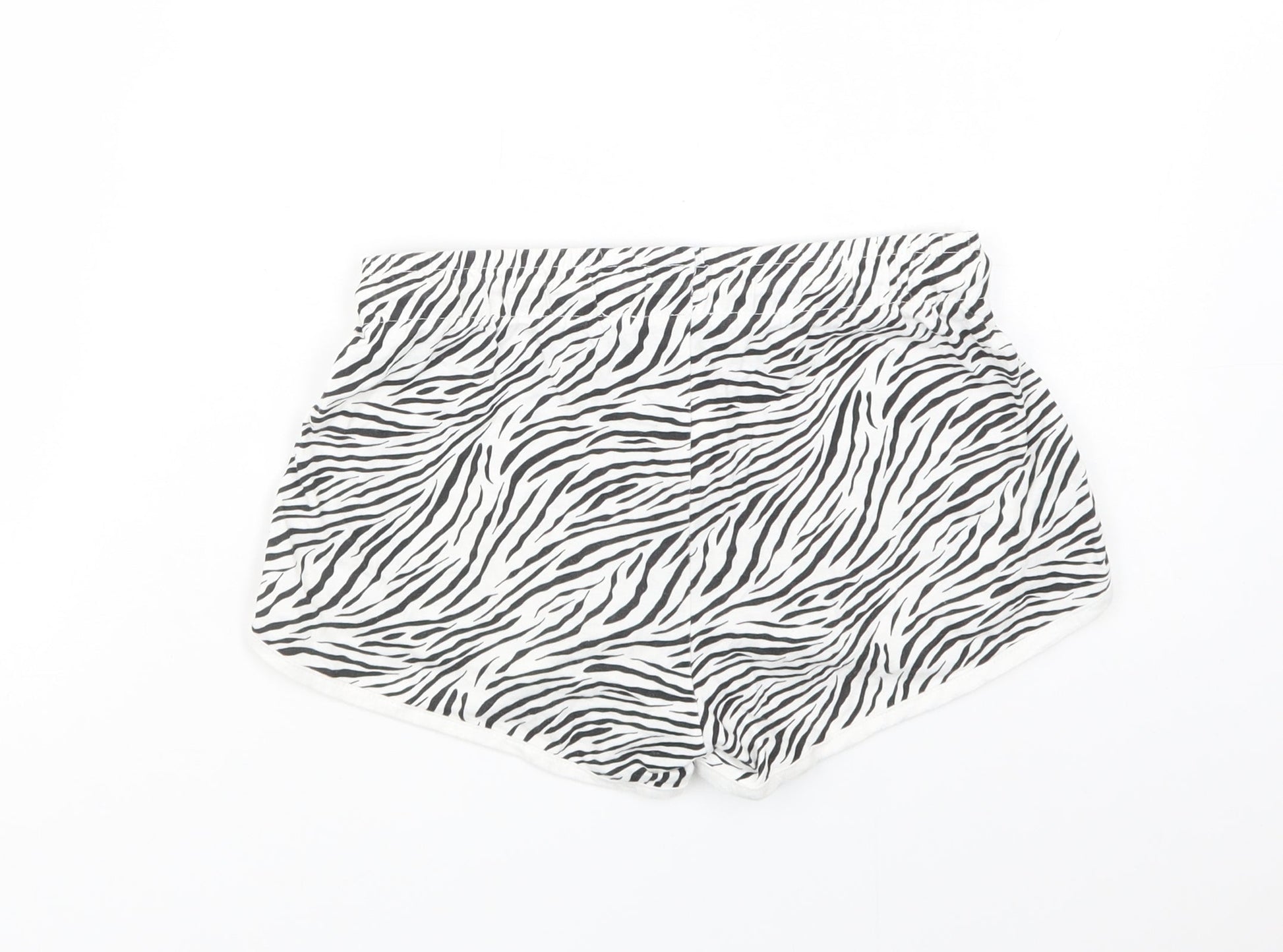 Primark Womens White Animal Print Cotton Sweat Shorts Size XS L3 in Regular Drawstring
