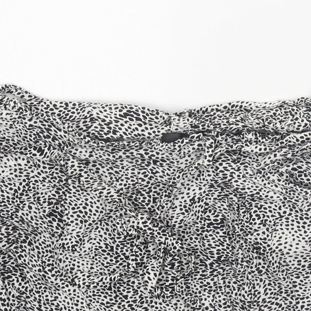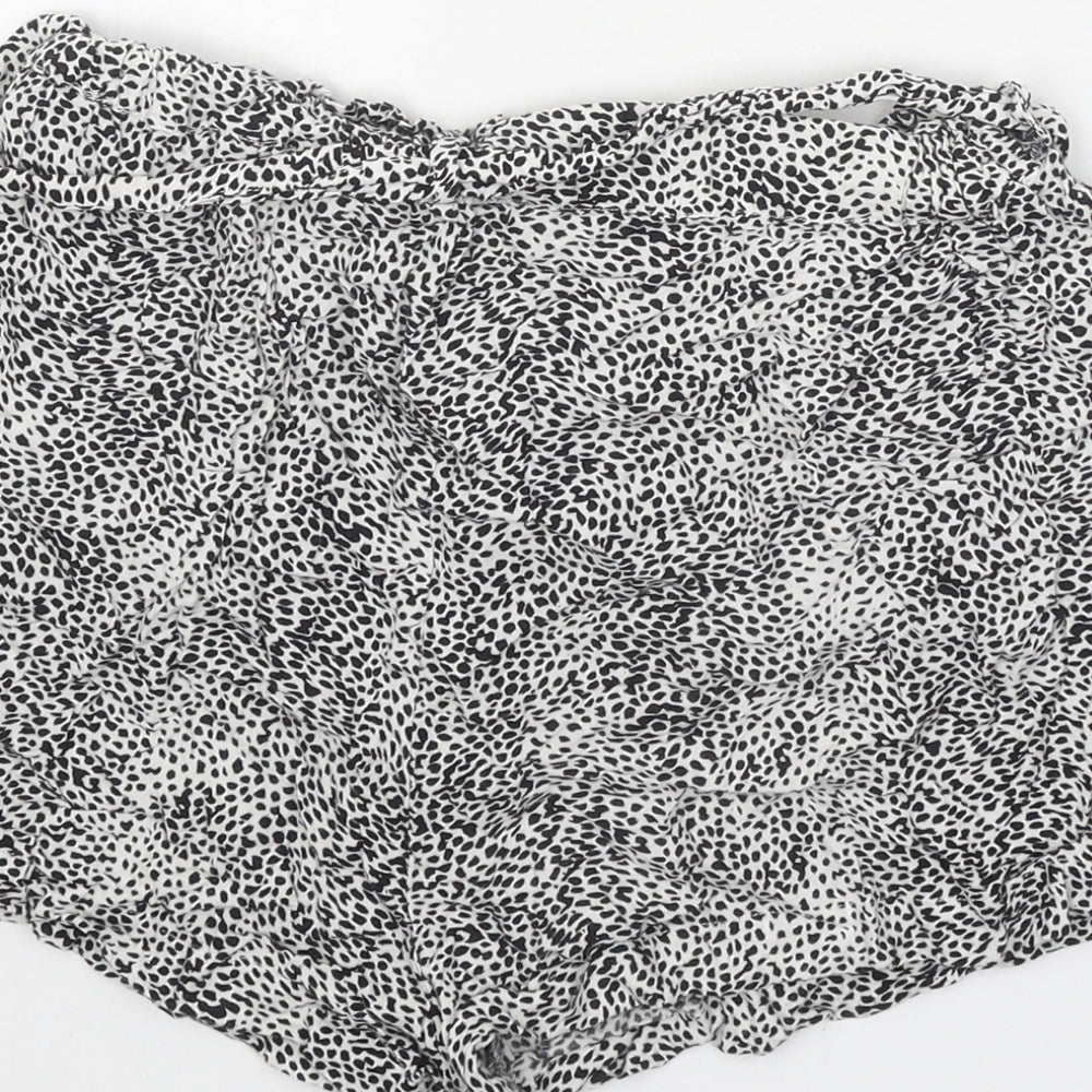 Primark Womens White Animal Print Viscose Bermuda Shorts Size 8 Regular Tie