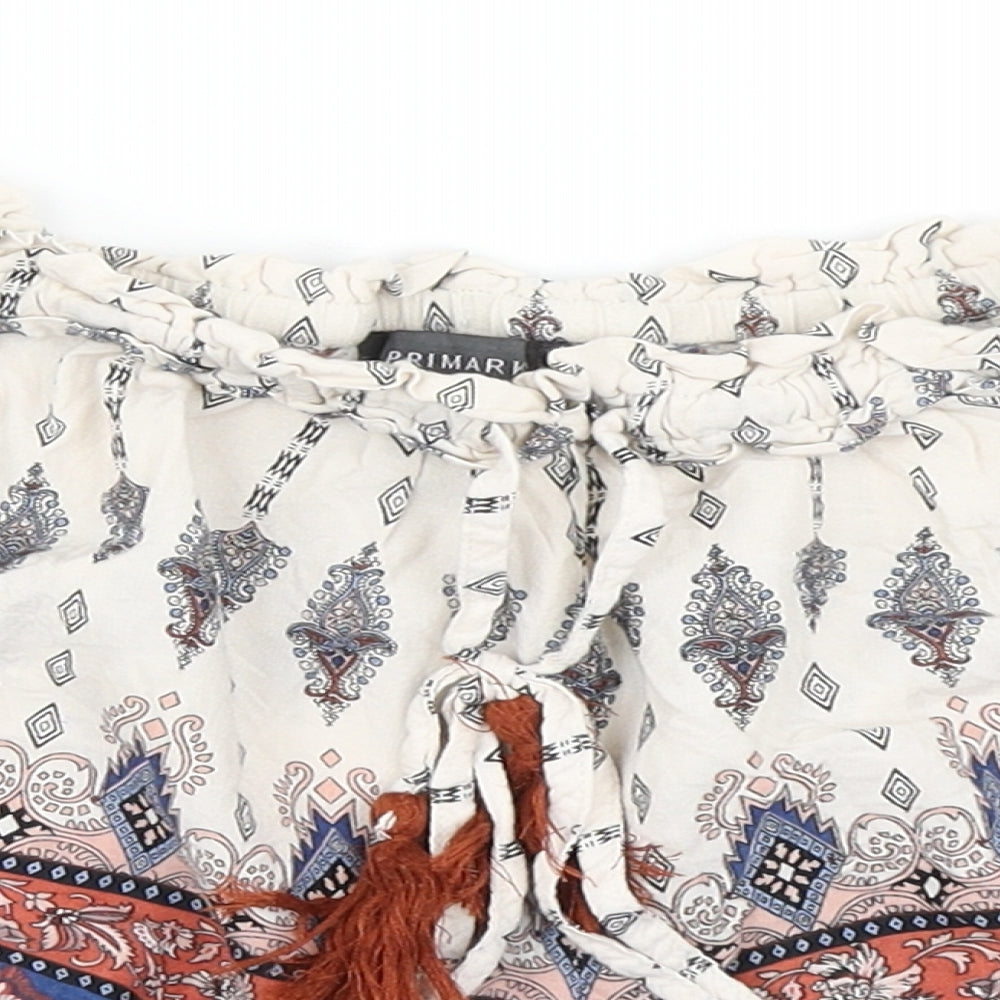 Primark Womens White Argyle/Diamond Hot Pants Shorts Size 8