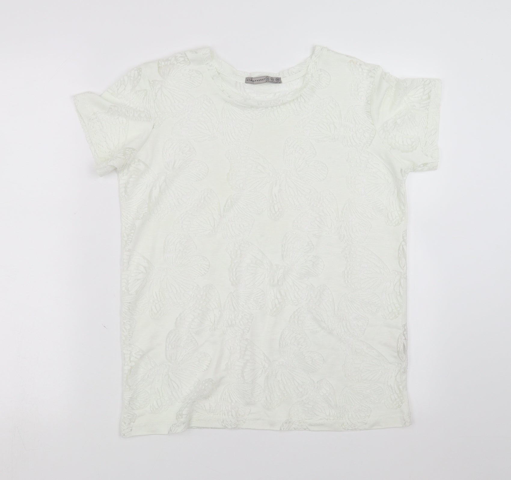 Primark Womens White Basic T-Shirt Size 12 - butterflies