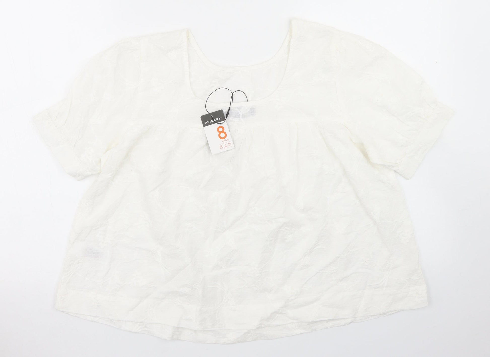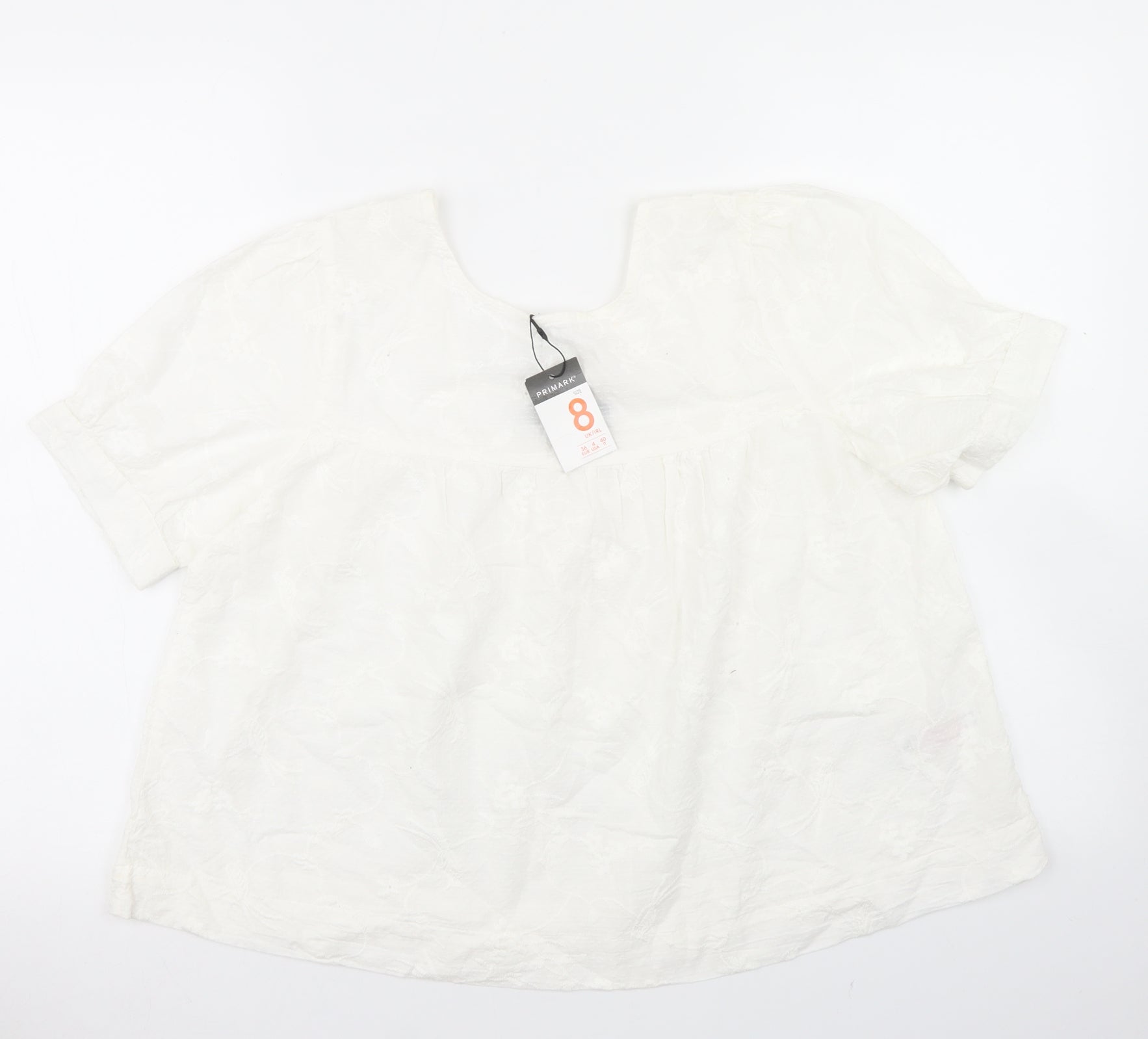 Primark Womens White Cotton Basic Blouse Size 8 Round Neck