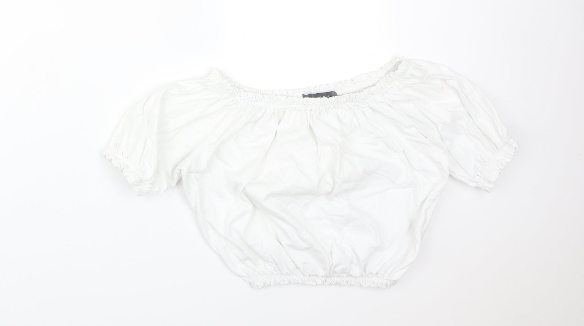 Primark Womens White Cotton Basic T-Shirt Size 4 Off the Shoulder