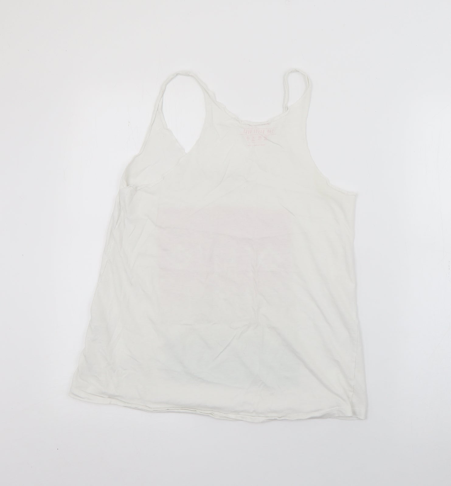 Primark Womens White Cotton Camisole Tank Size 10 Scoop Neck - Free Spirit
