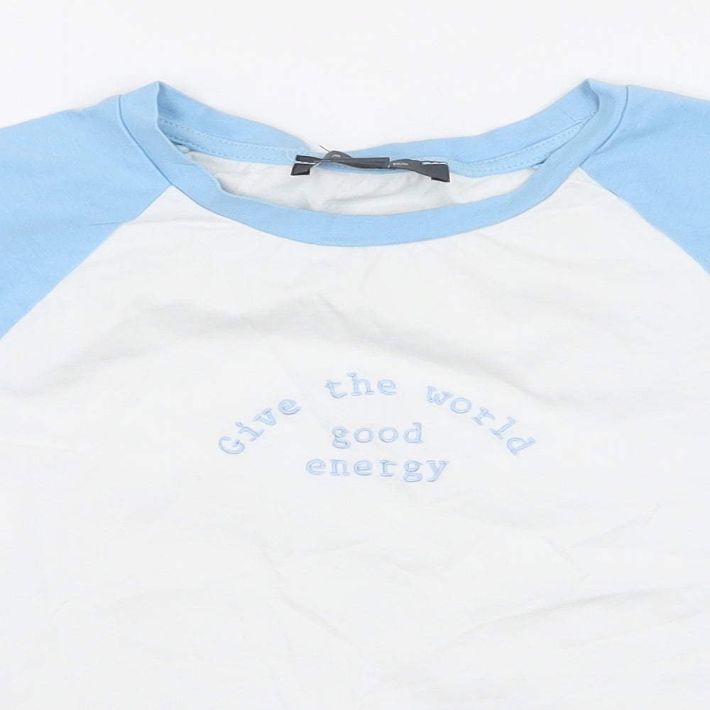 Primark Womens White Cotton Cropped T-Shirt Size M Round Neck