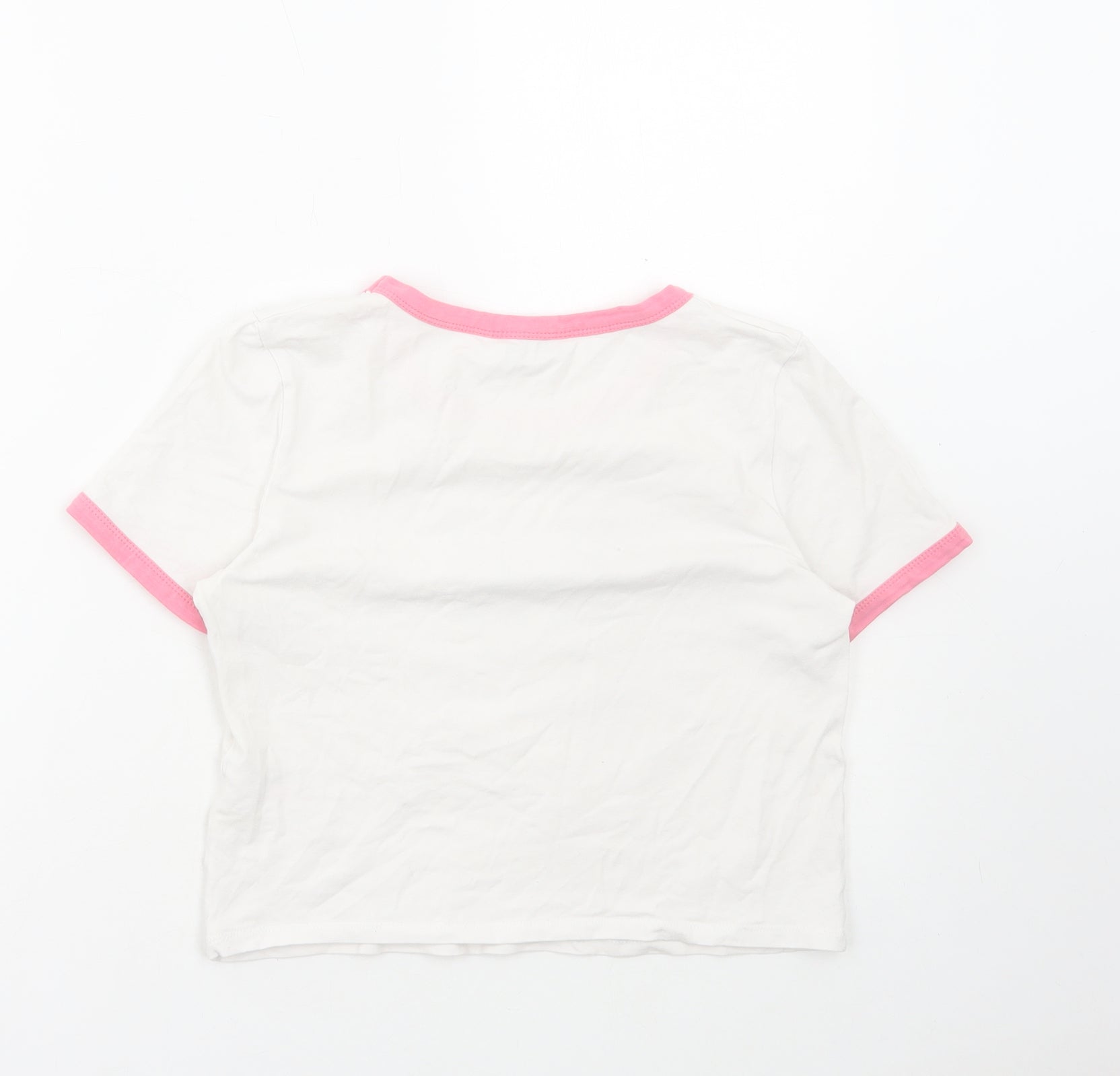 Primark Womens White Cotton Cropped T-Shirt Size M Round Neck - Self Love
