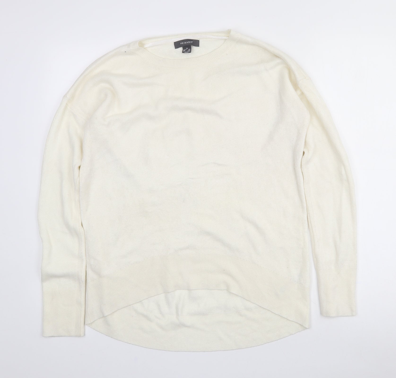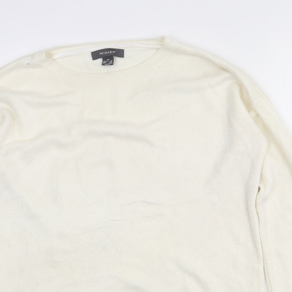 Primark Womens White Crew Neck Acrylic Pullover Jumper Size 8 - 6-8 Oversized