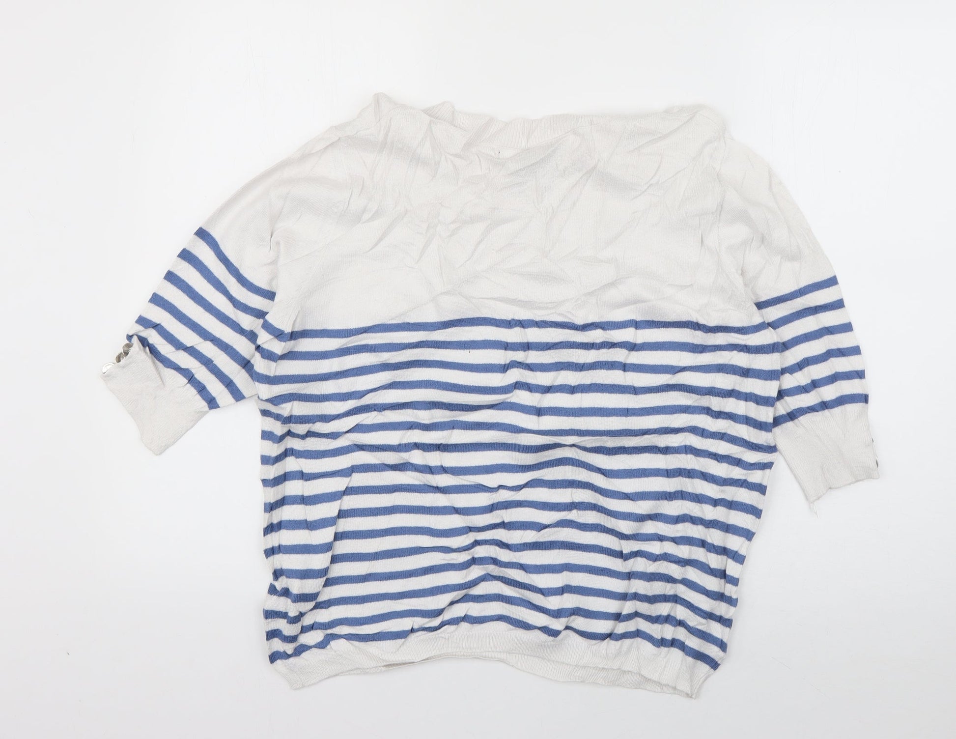 Primark Womens White Crew Neck Striped Viscose Pullover Jumper Size 18