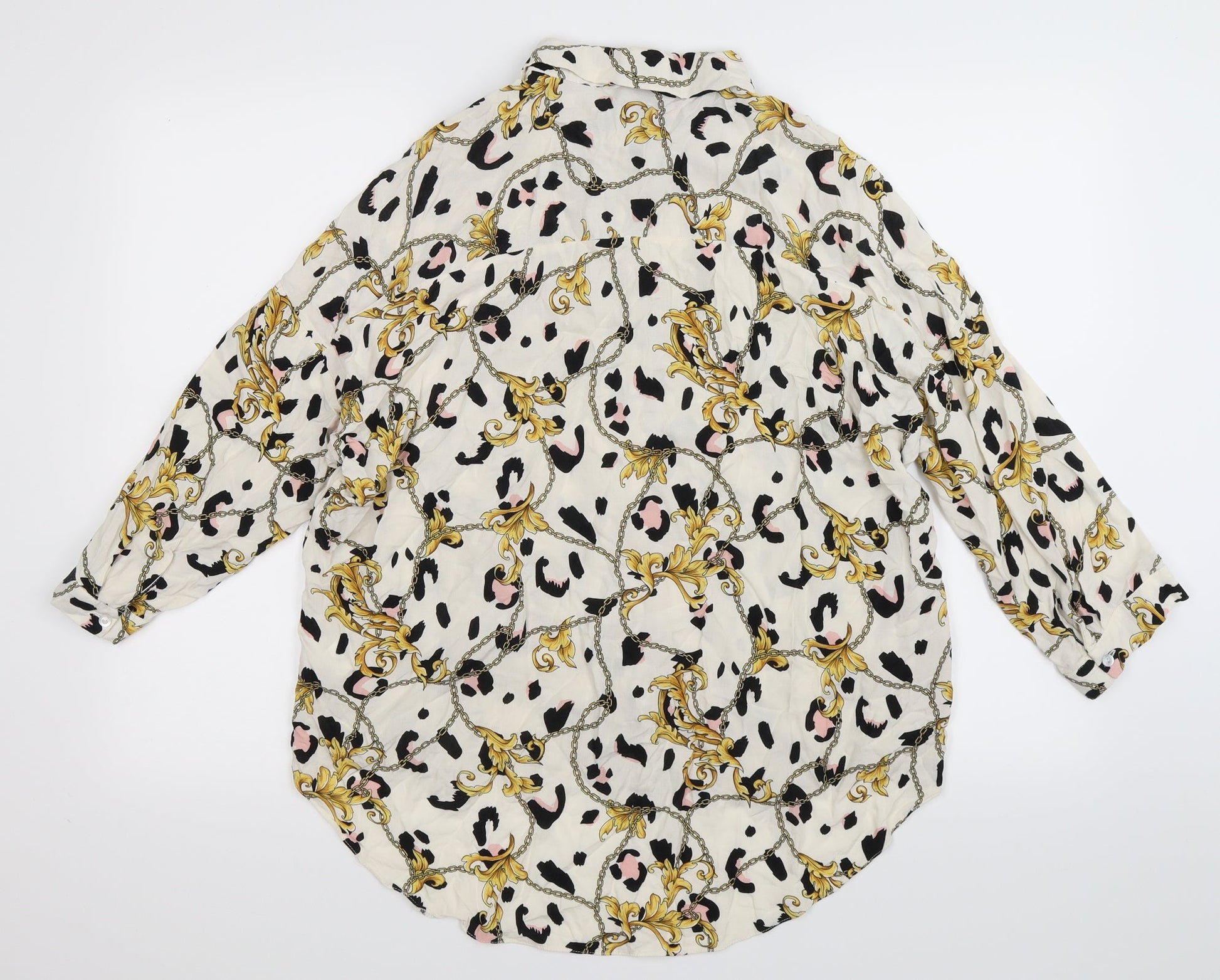 Primark Womens White Floral Basic Button-Up Size 8 - Oversized