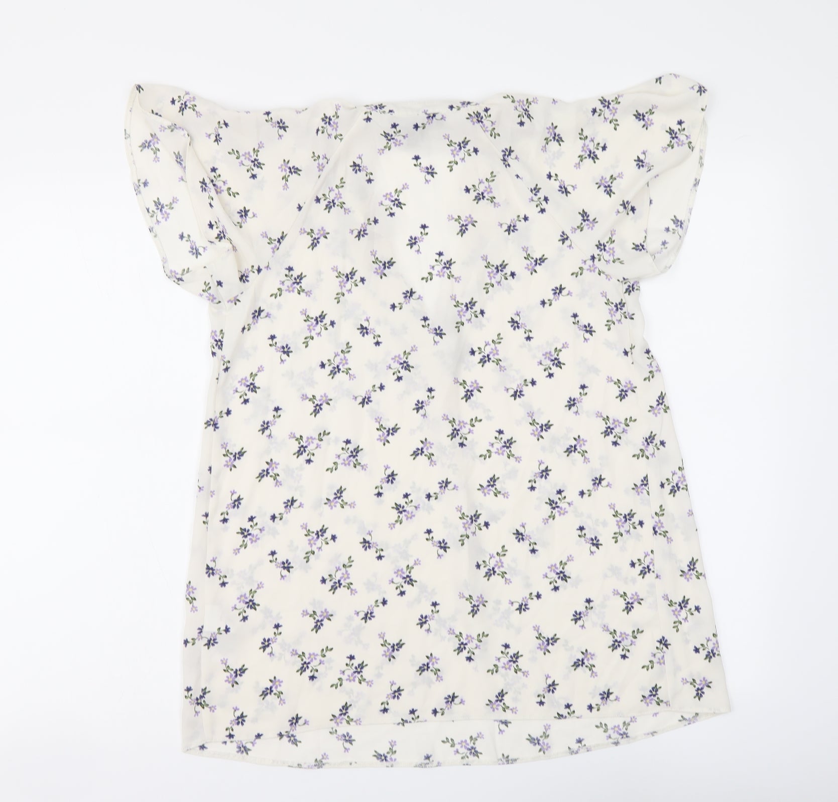 Primark Womens White Floral Polyester Basic Blouse Size 8 V-Neck