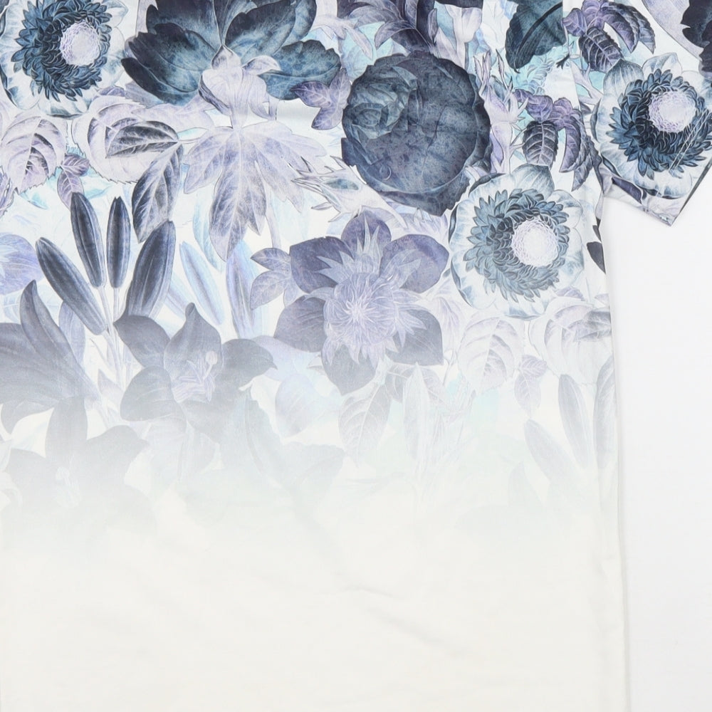 Primark Womens White Floral Polyester Basic T-Shirt Size XS Round Neck - Defiance/Discord Slogan