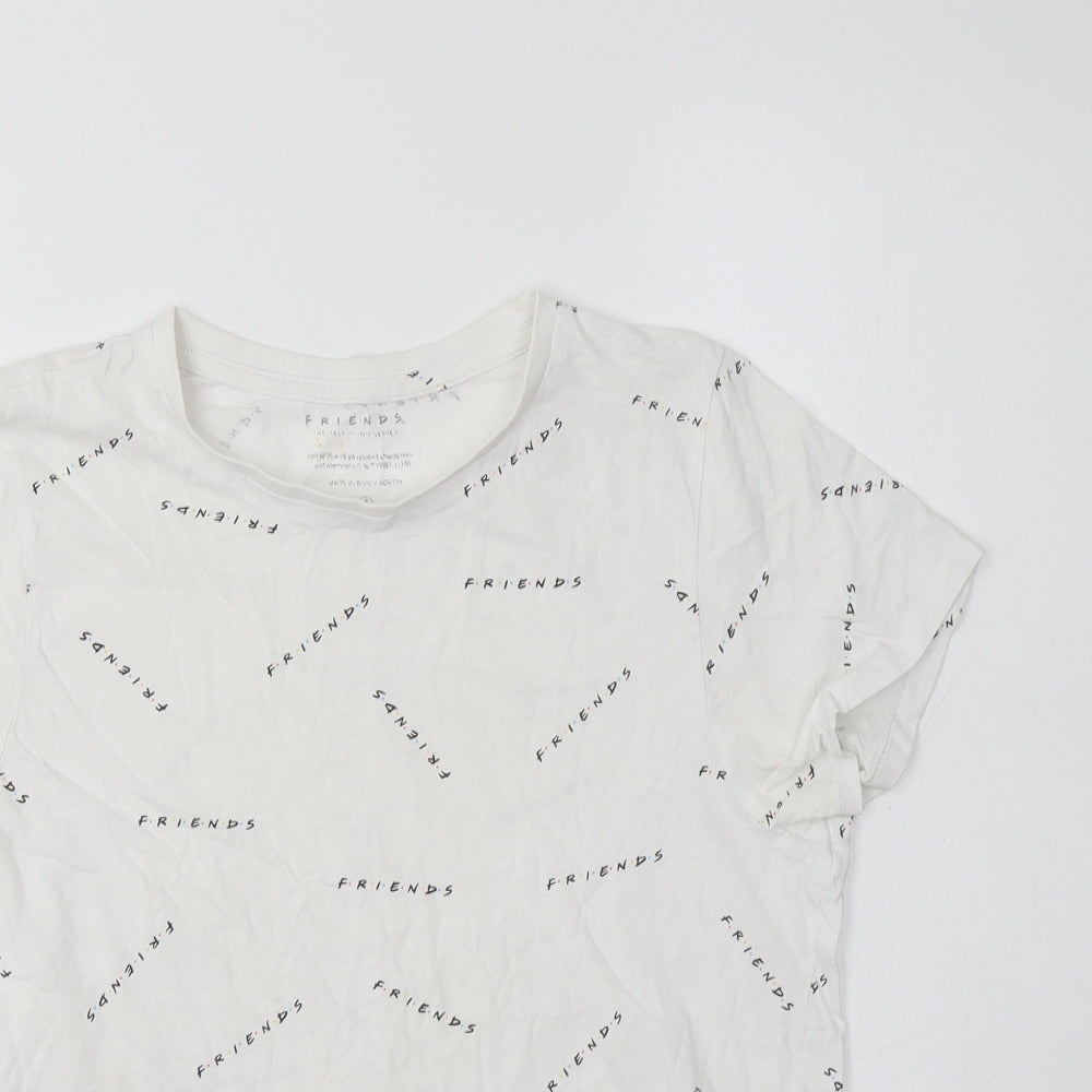 Primark Womens White Geometric Cotton Basic T-Shirt Size S Crew Neck - Friends