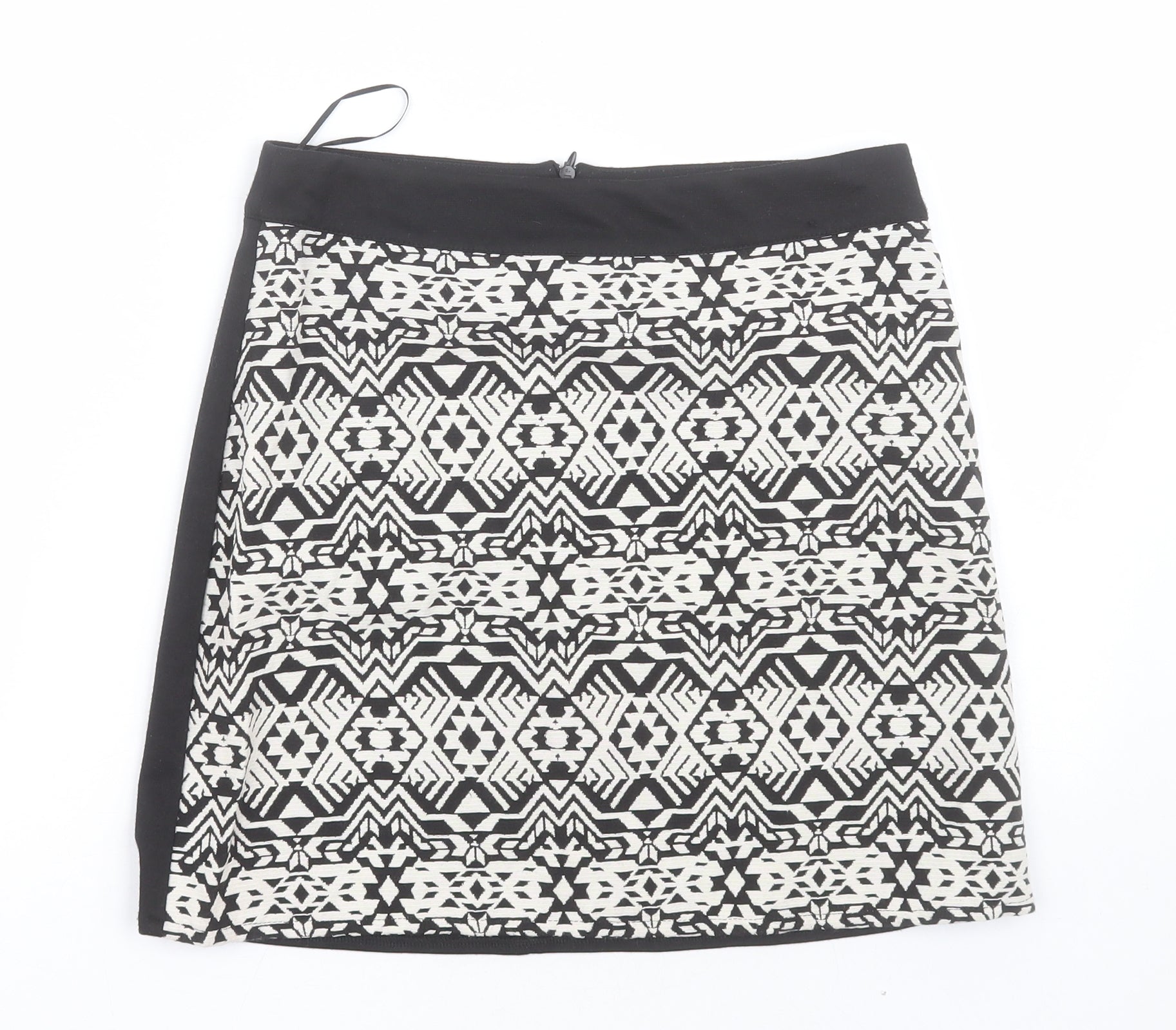 Primark Womens White Geometric Polyester A-Line Skirt Size 10 Zip