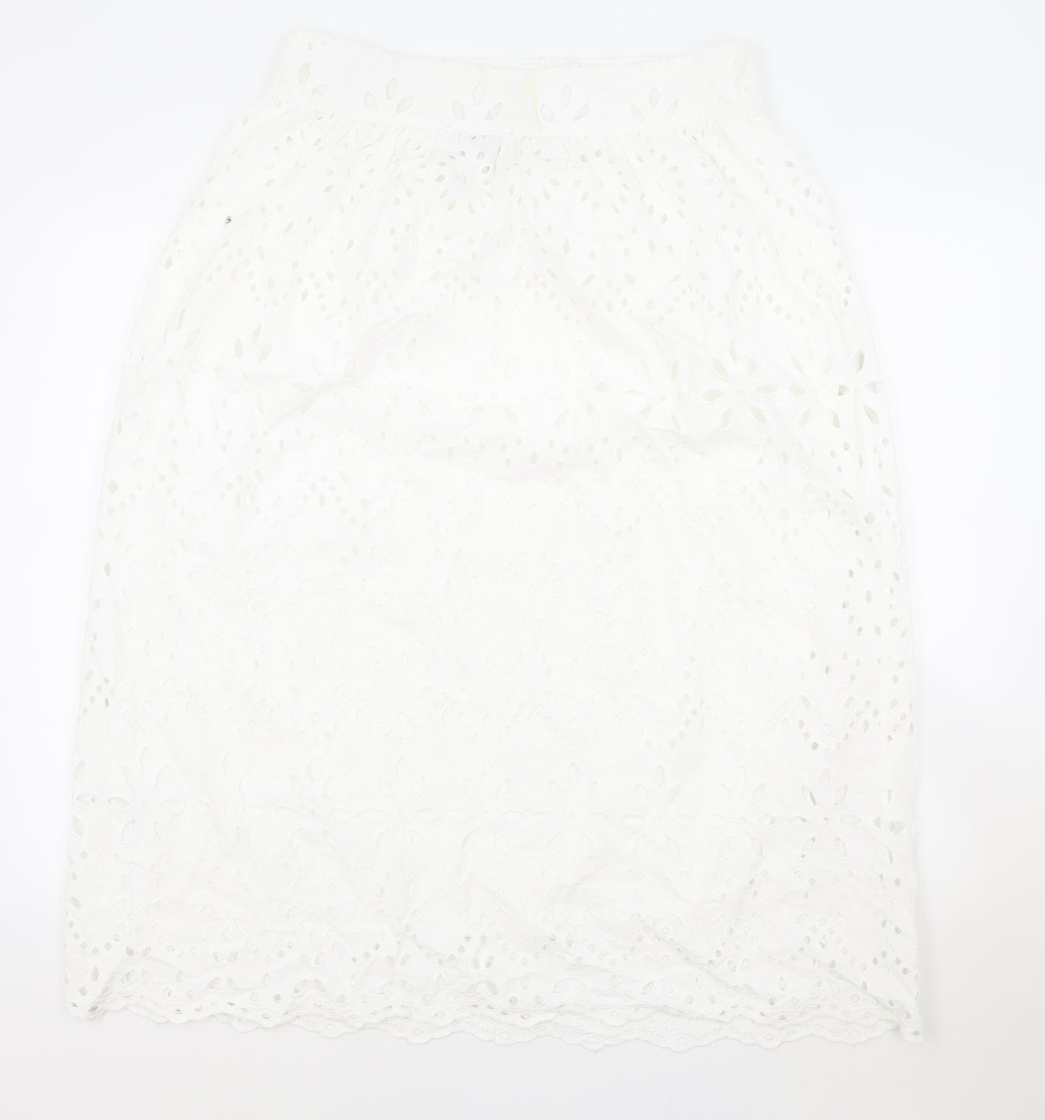 Primark Womens White Geometric Polyester Swing Skirt Size 14 Zip