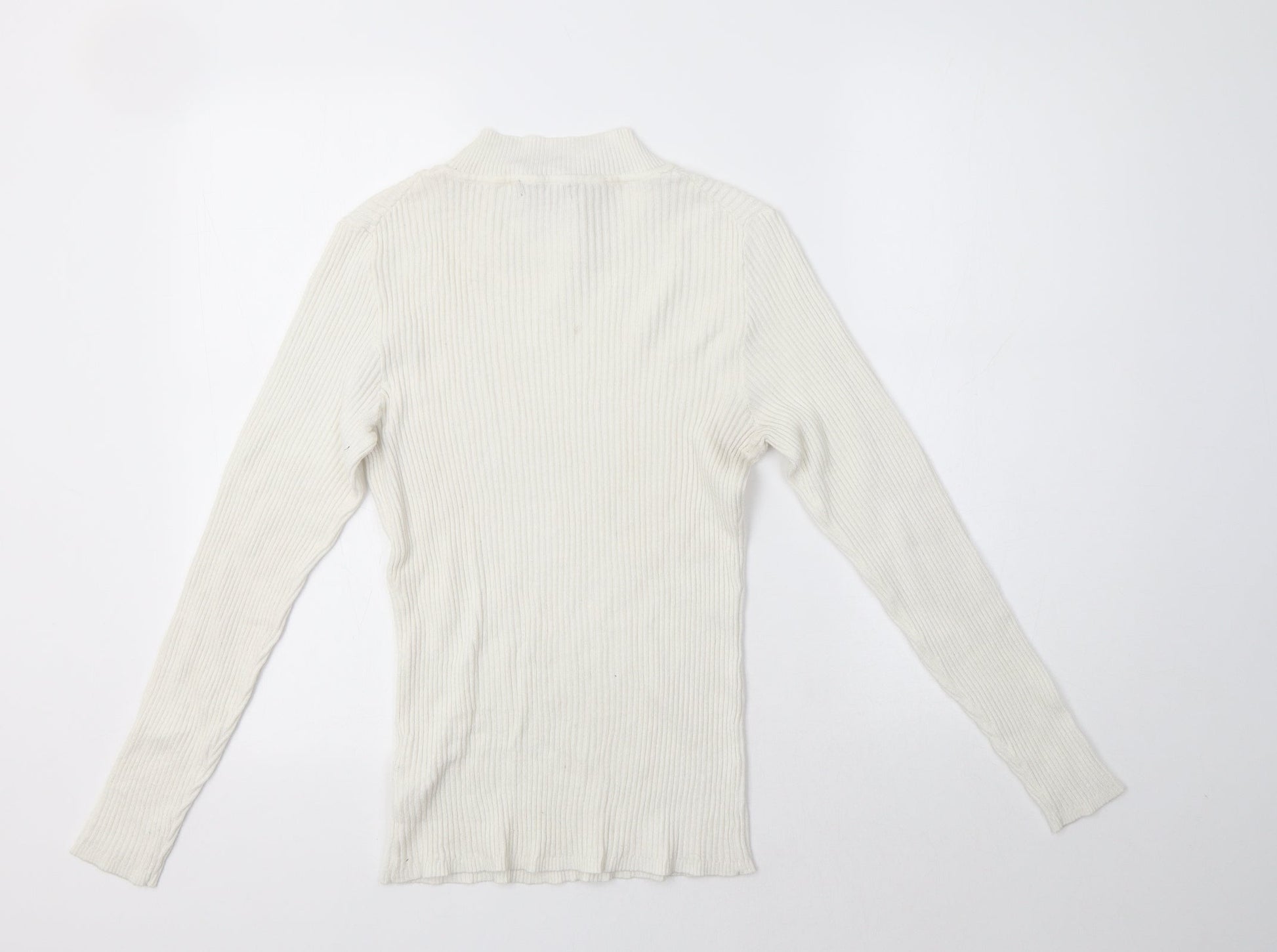 Primark Womens White Mock Neck Viscose Pullover Jumper Size L