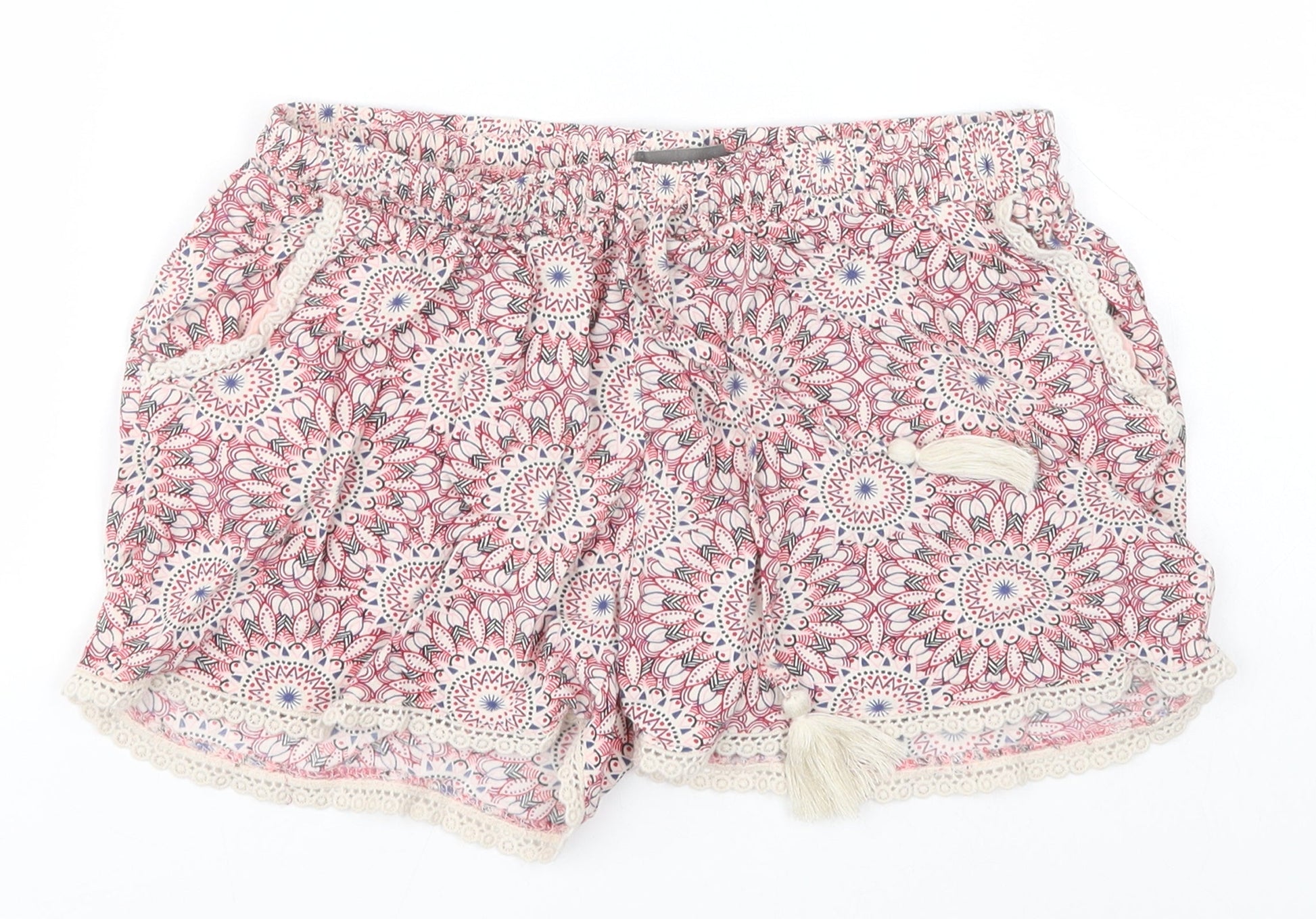 Primark Womens White Paisley Viscose Sailor Shorts Size 6 Regular