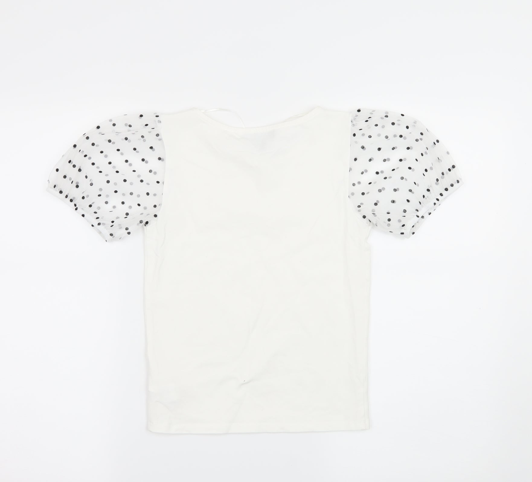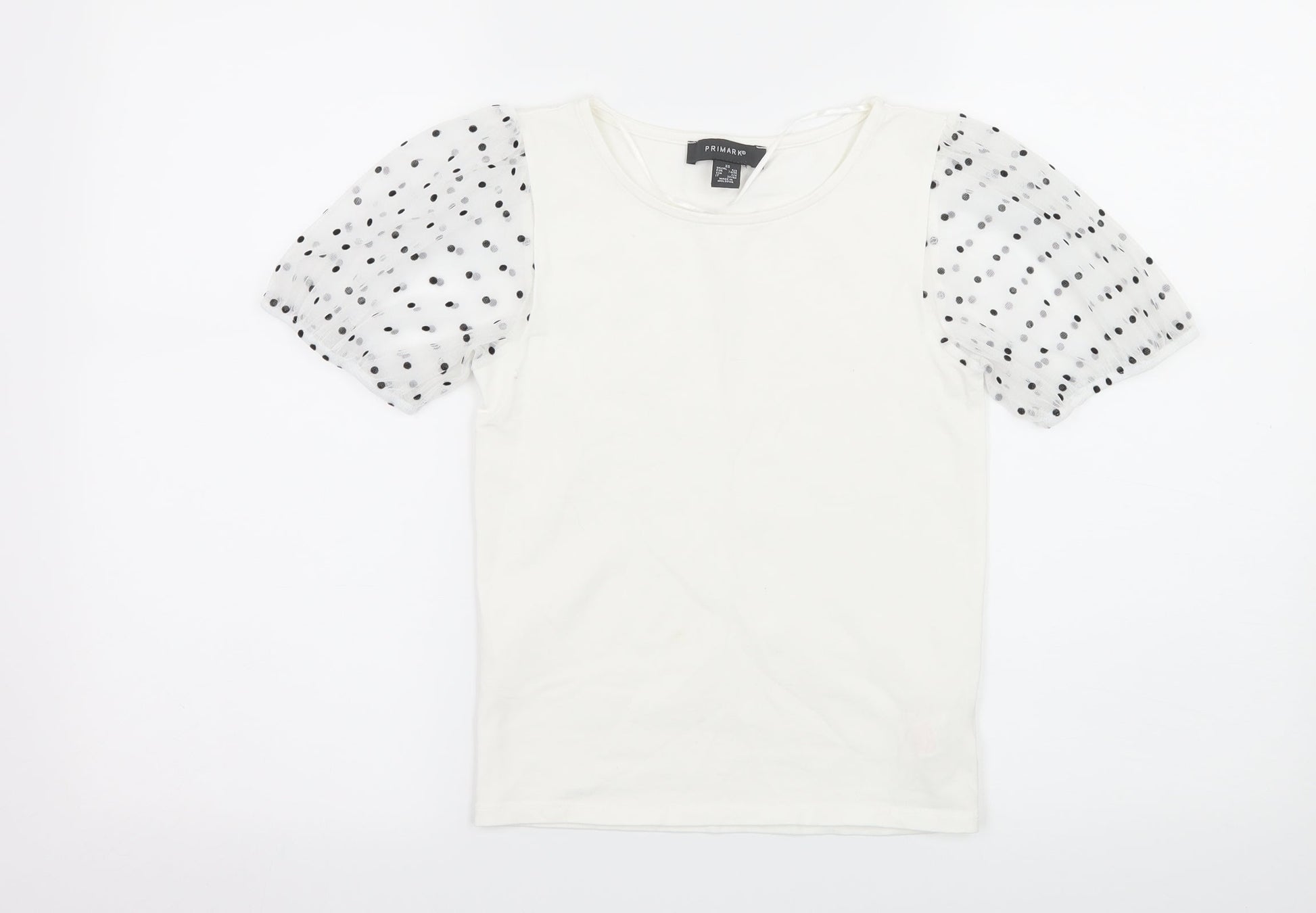 Primark Womens White Polka Dot Jersey Basic T-Shirt Size 6 - sheer sleeves