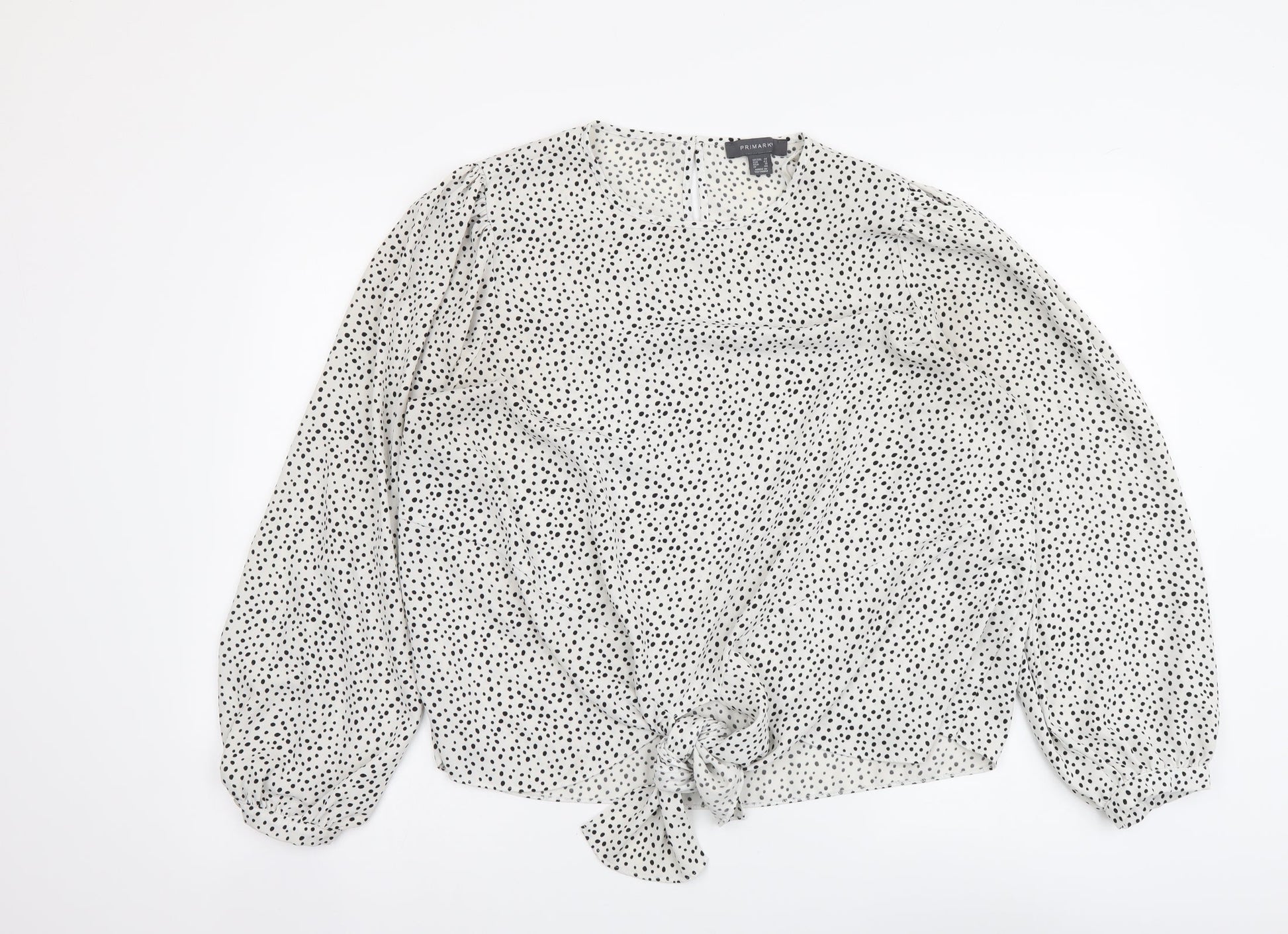 Primark Womens White Polka Dot Viscose Basic Blouse Size 14 Round Neck