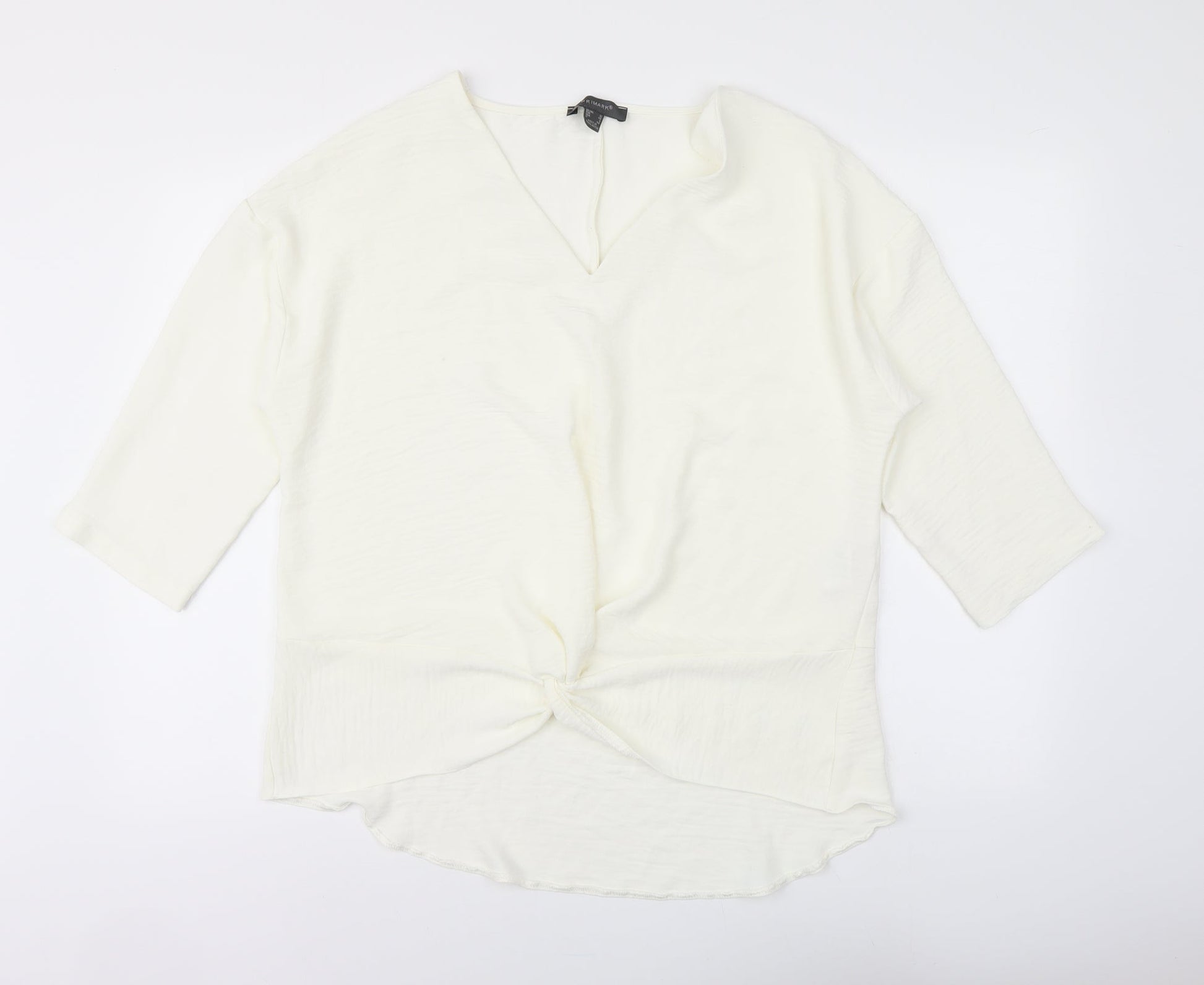Primark Womens White Polyester Basic Blouse Size 12 V-Neck - Knot Front