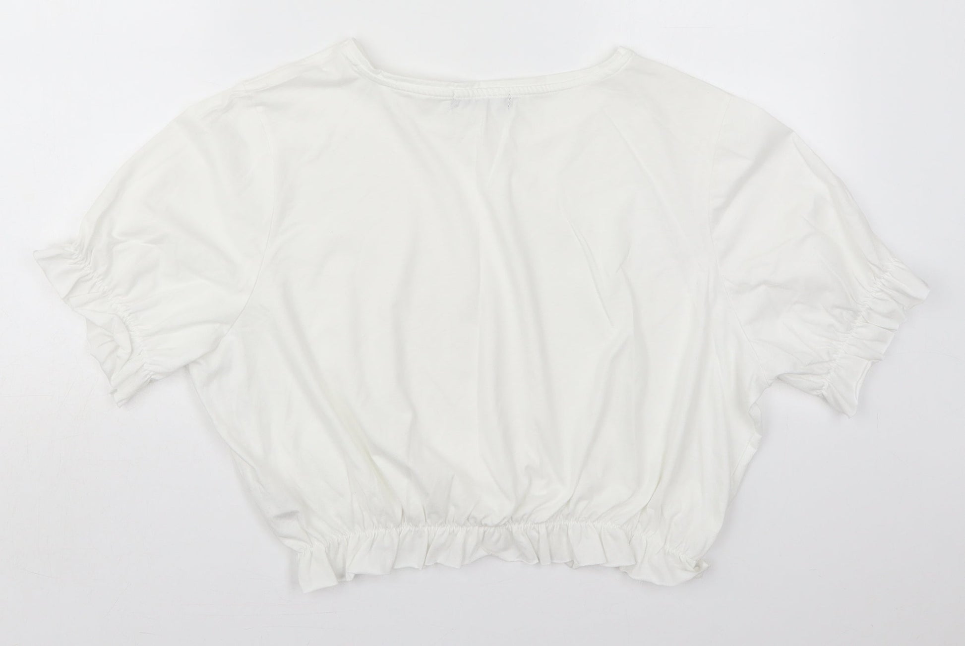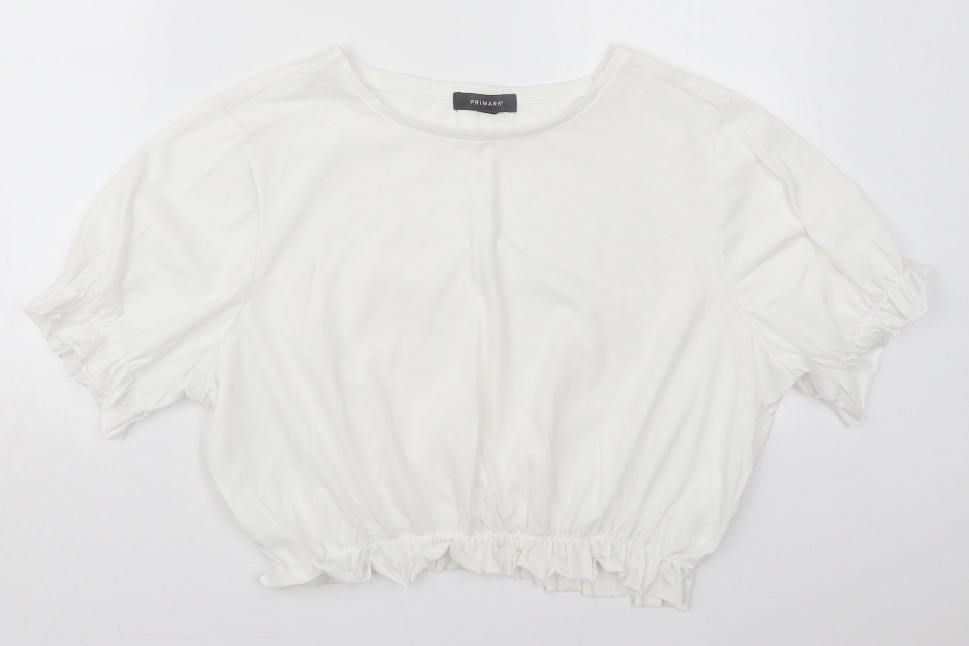 Primark Womens White Polyester Cropped T-Shirt Size 22 Crew Neck