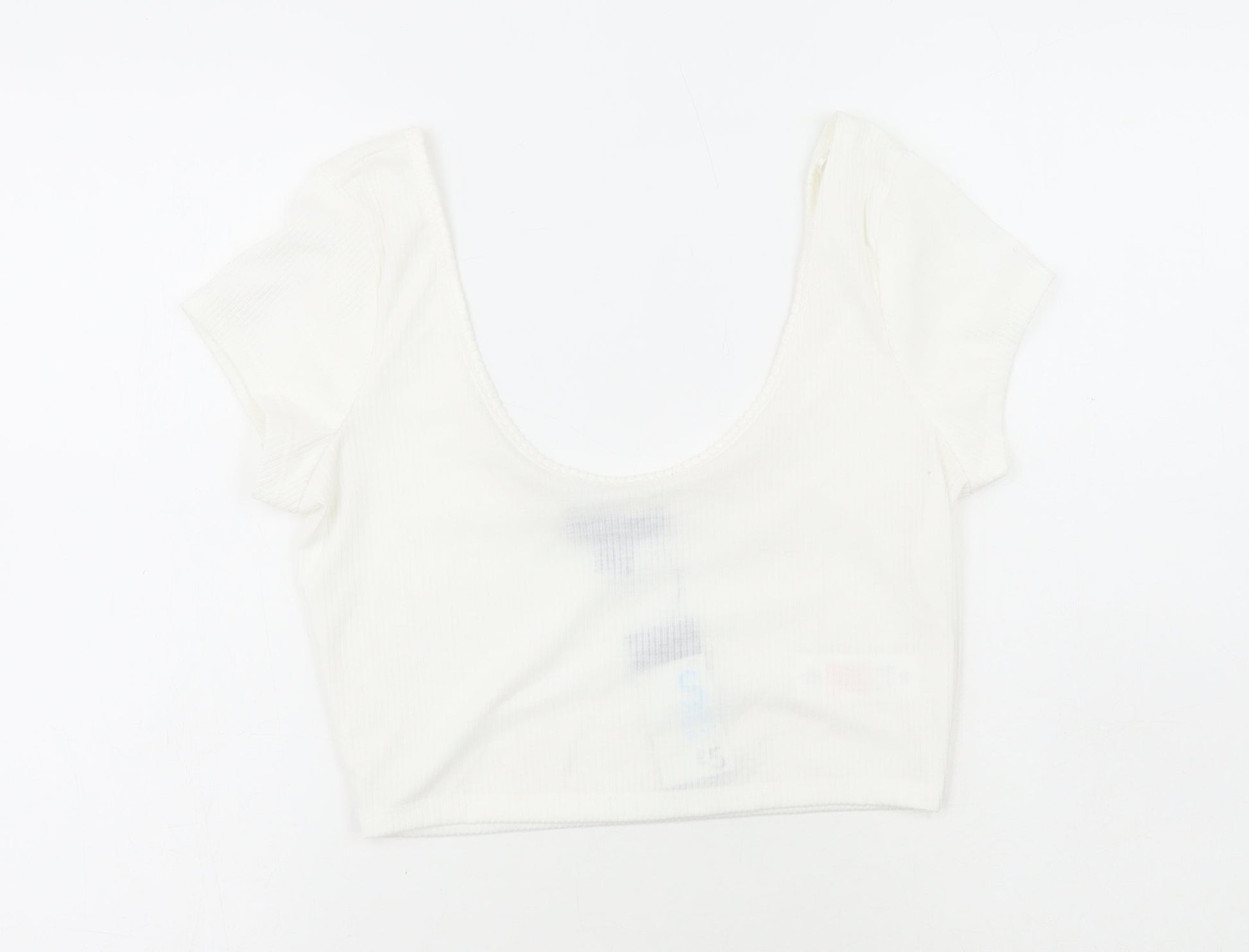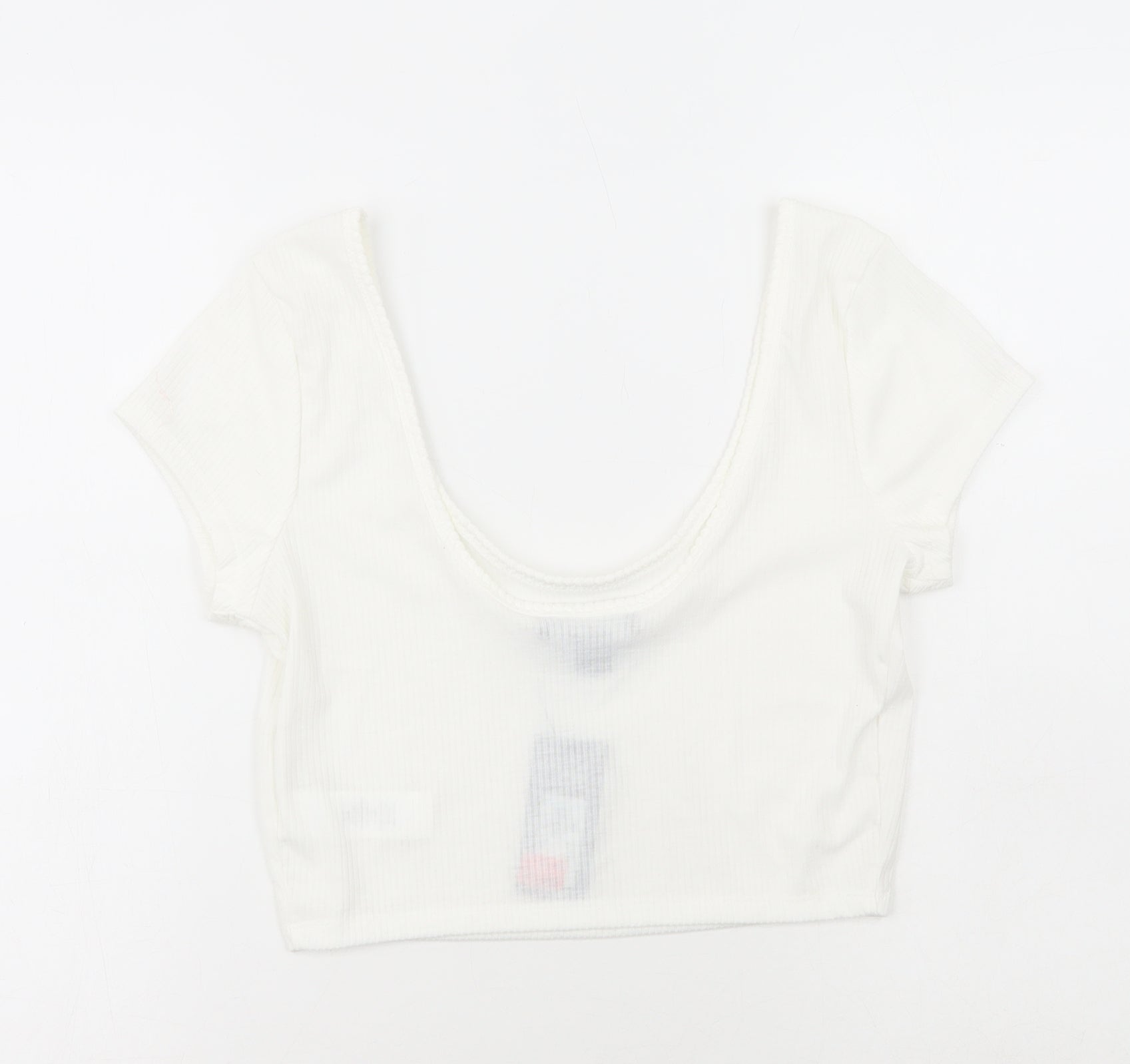 Primark Womens White Polyester Cropped T-Shirt Size S Scoop Neck