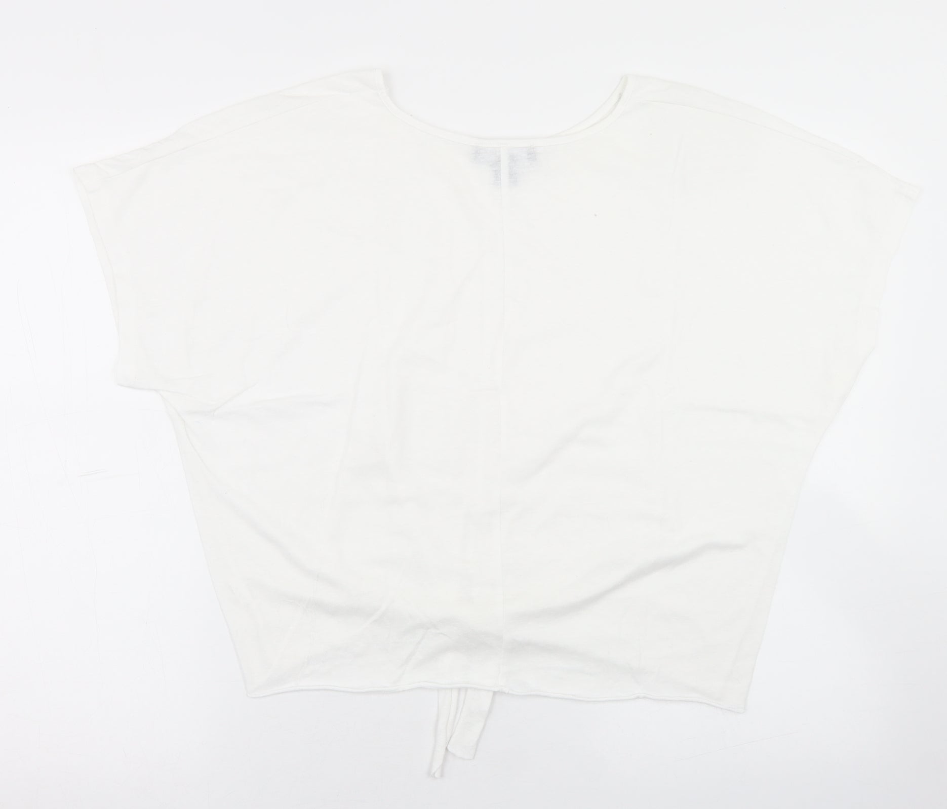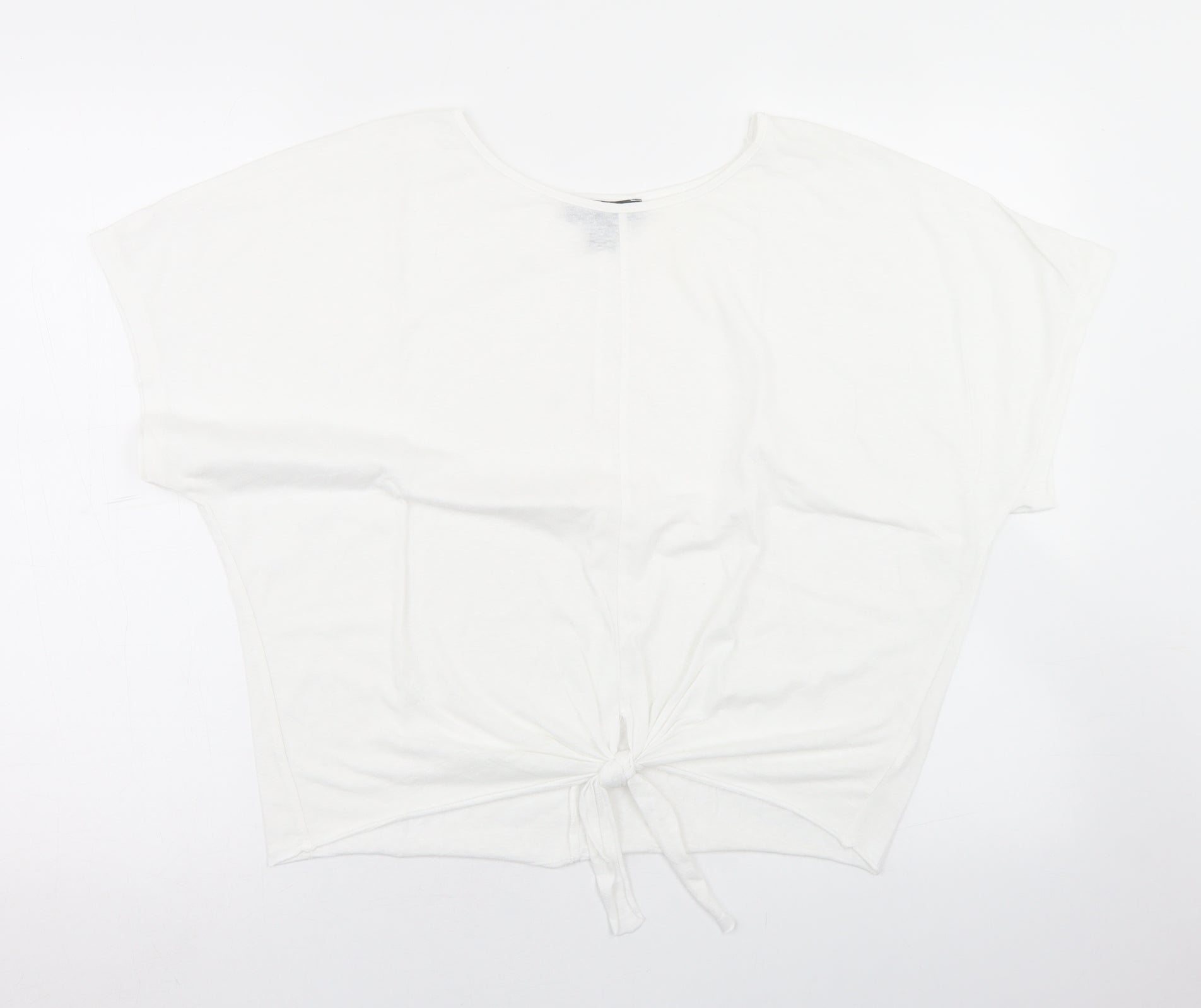Primark Womens White Polyester Cropped T-Shirt Size XS Round Neck - Tie Front