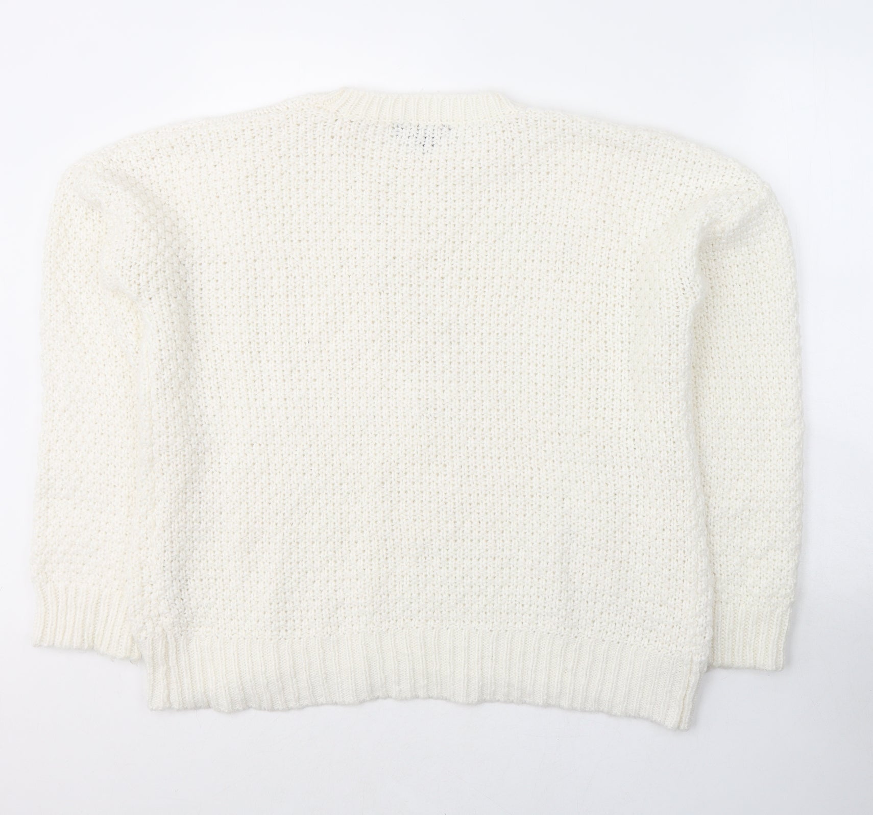 Primark Womens White Round Neck Acrylic Pullover Jumper Size 18