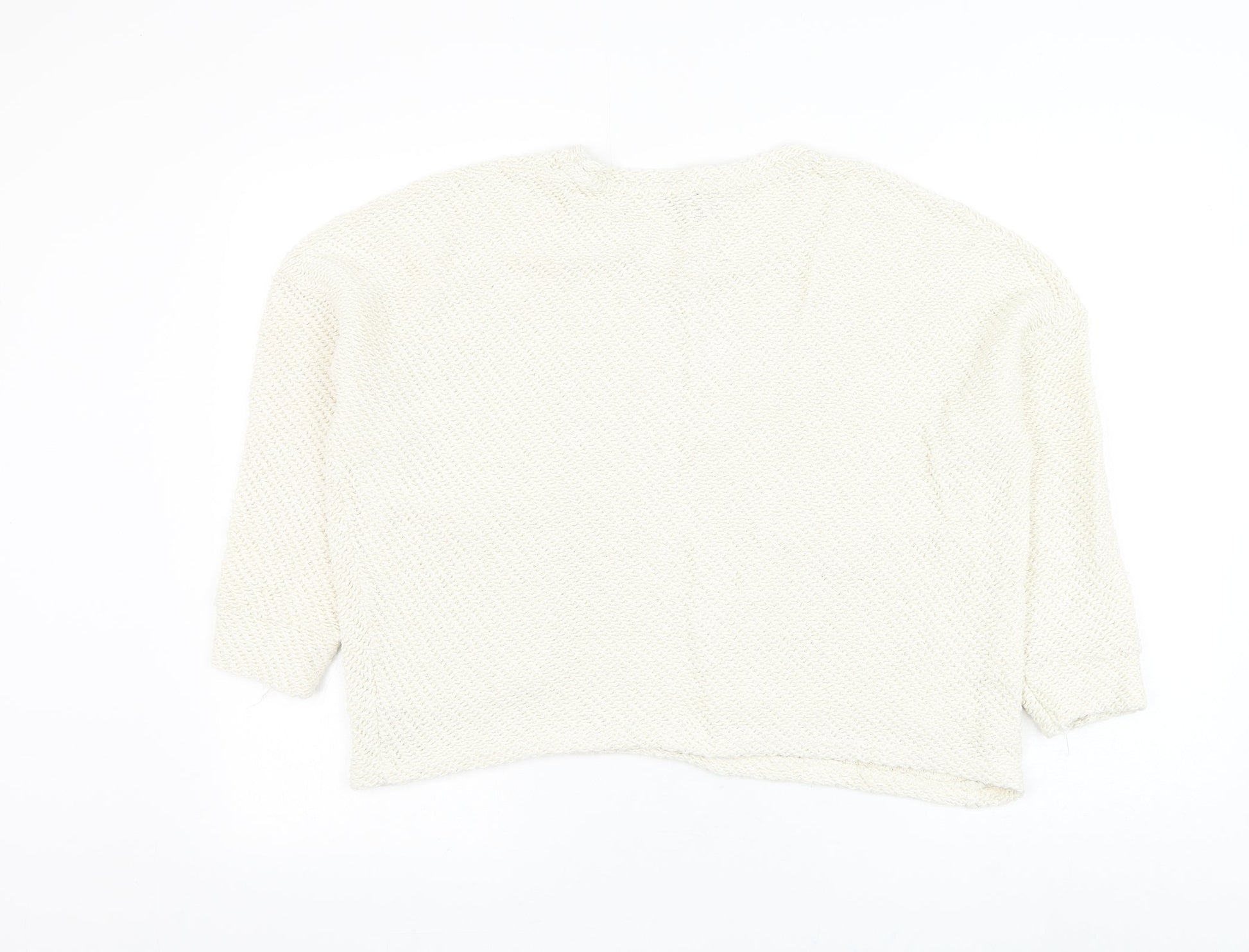 Primark Womens White Round Neck Cotton Pullover Jumper Size 4