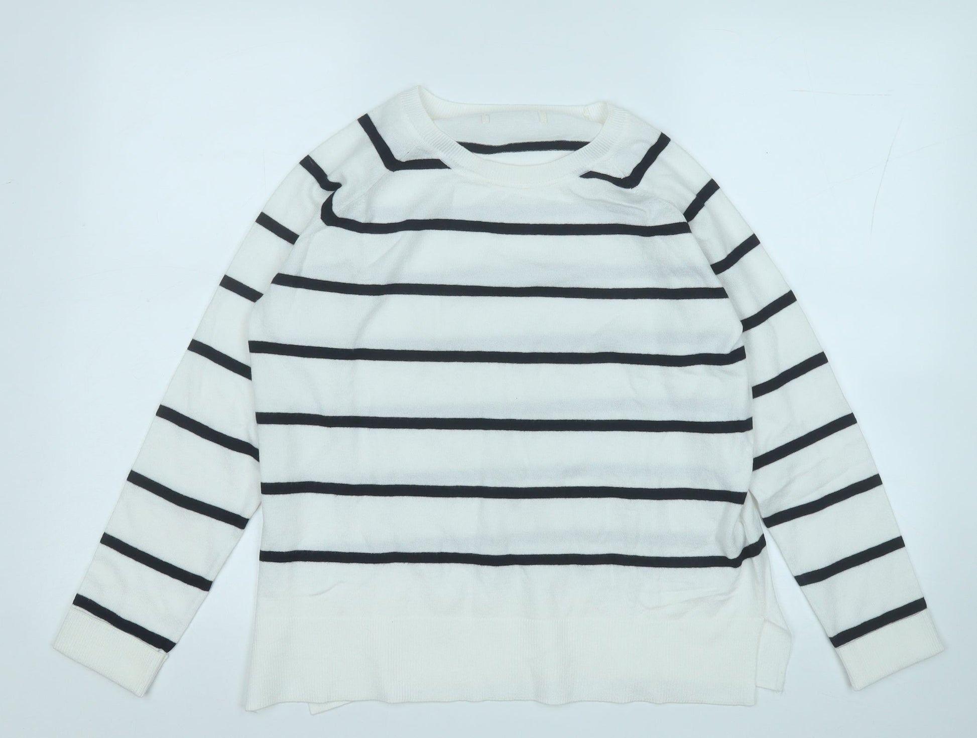 Primark Womens White Round Neck Striped Polyester Pullover Jumper Size 6