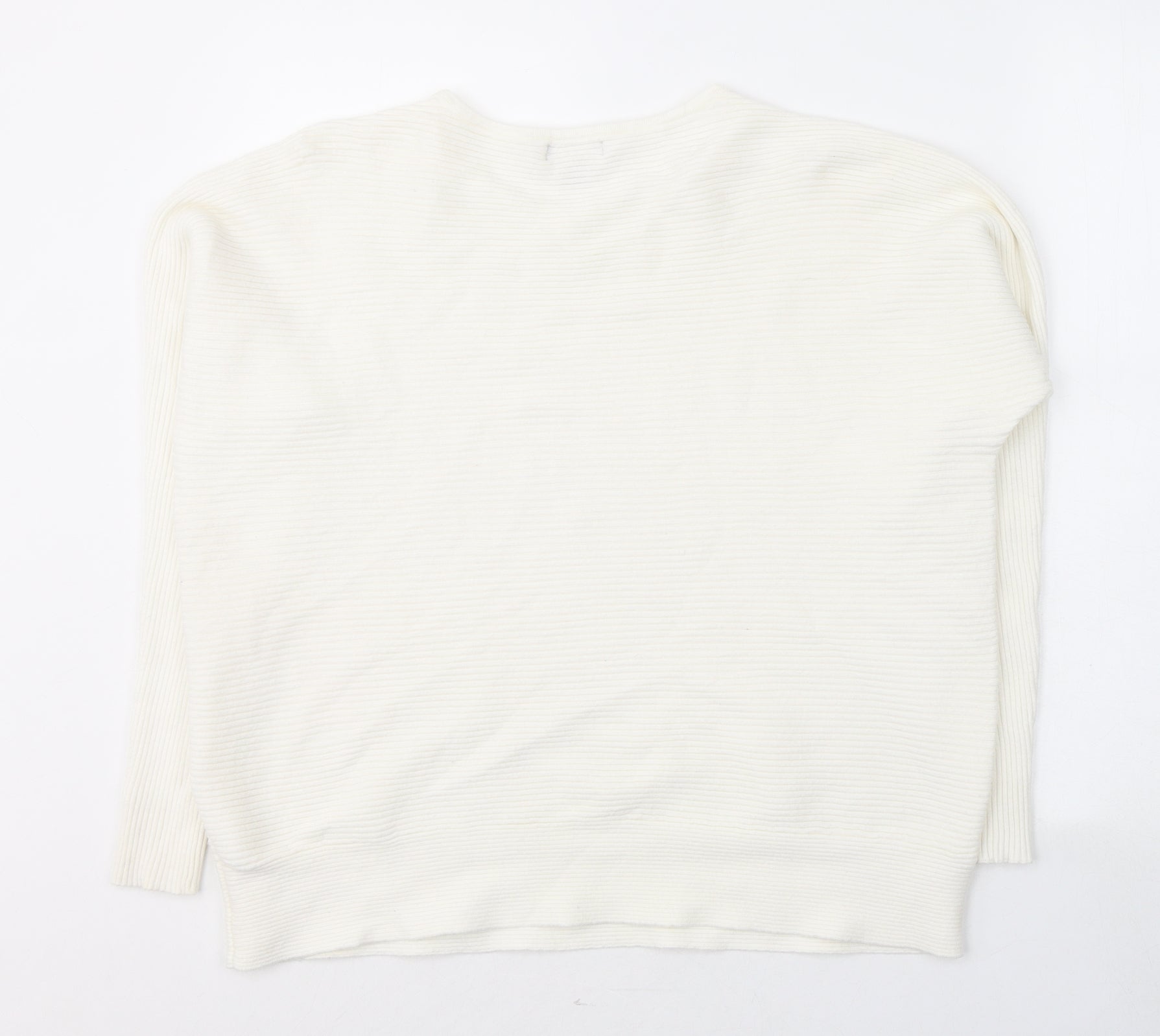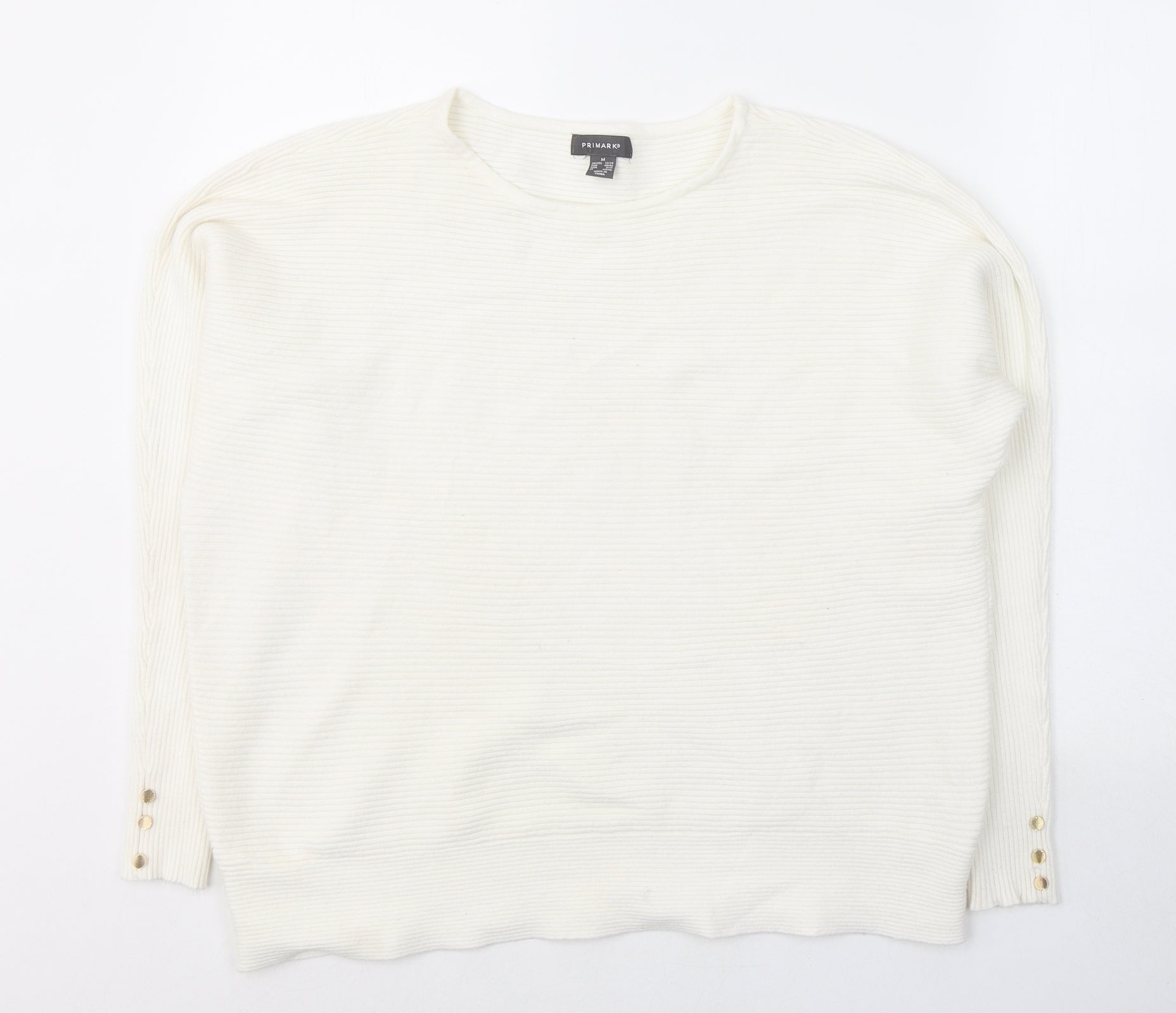 Primark Womens White Round Neck Viscose Pullover Jumper Size 12