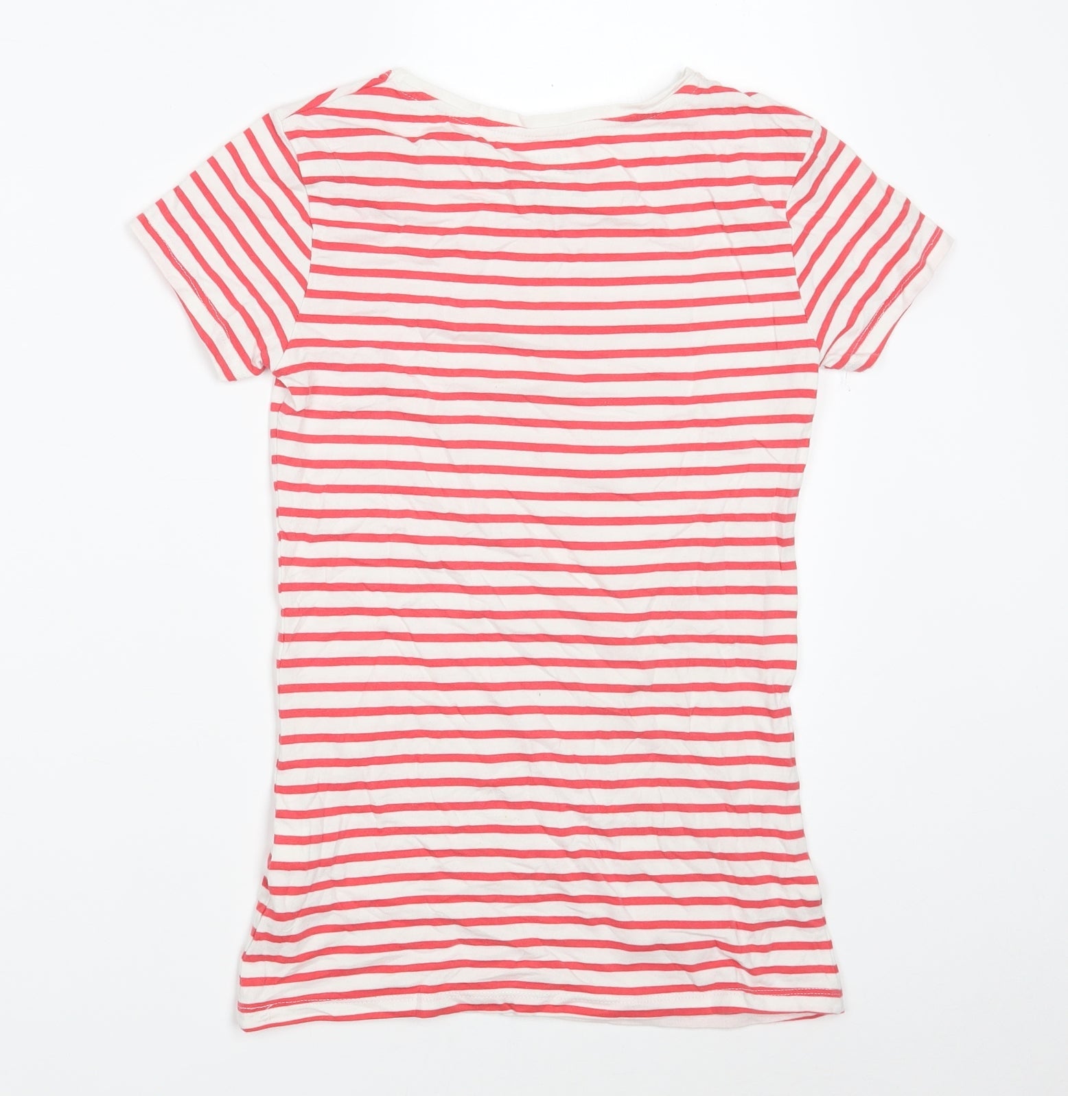 Primark Womens White Striped Cotton Basic T-Shirt Size 6 Crew Neck