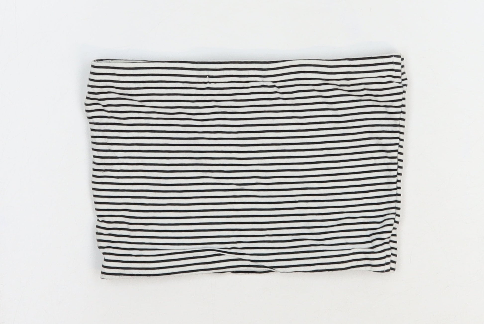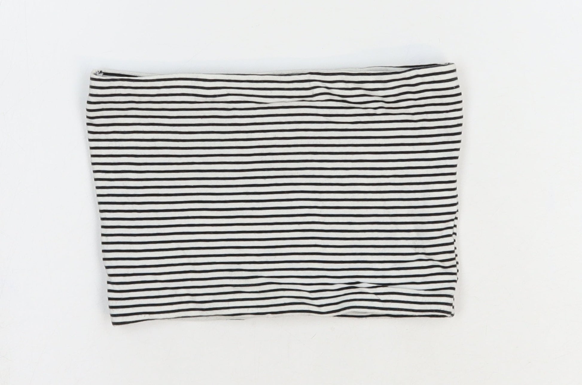 Primark Womens White Striped Cotton Cropped T-Shirt Size 6 Off the Shoulder