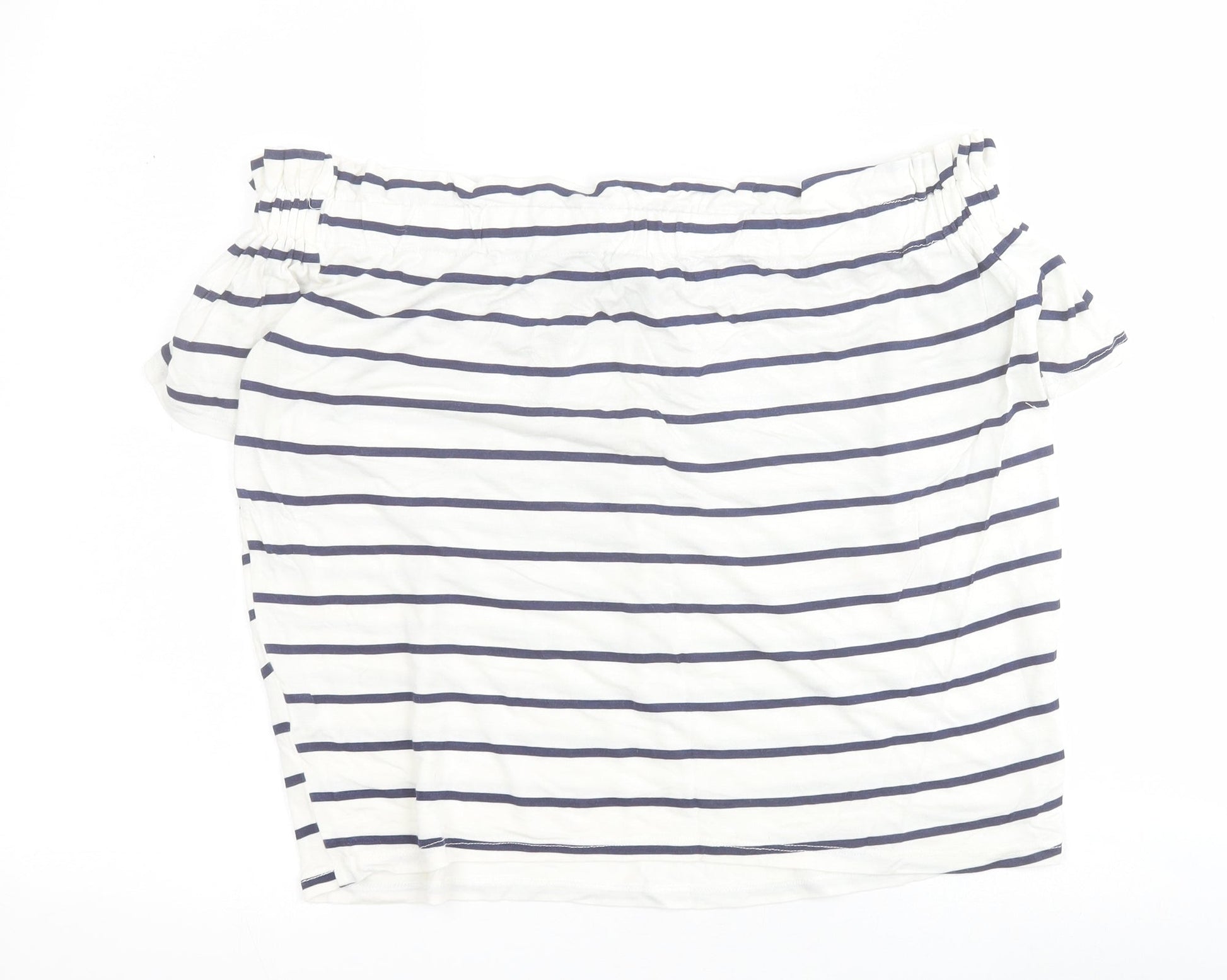 Primark Womens White Striped Viscose Basic Blouse Size 8 Off the Shoulder