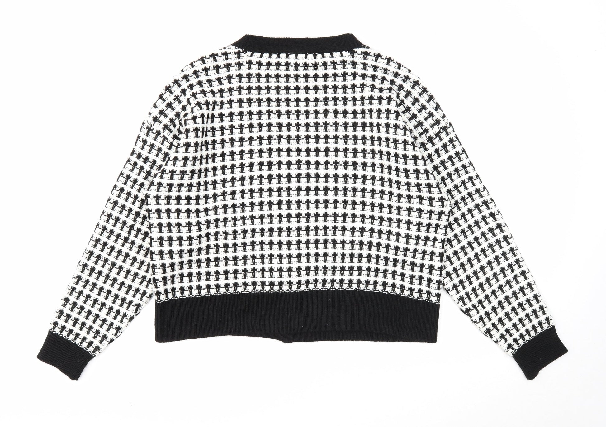 Primark Womens White V-Neck Geometric Acrylic Cardigan Jumper Size 14