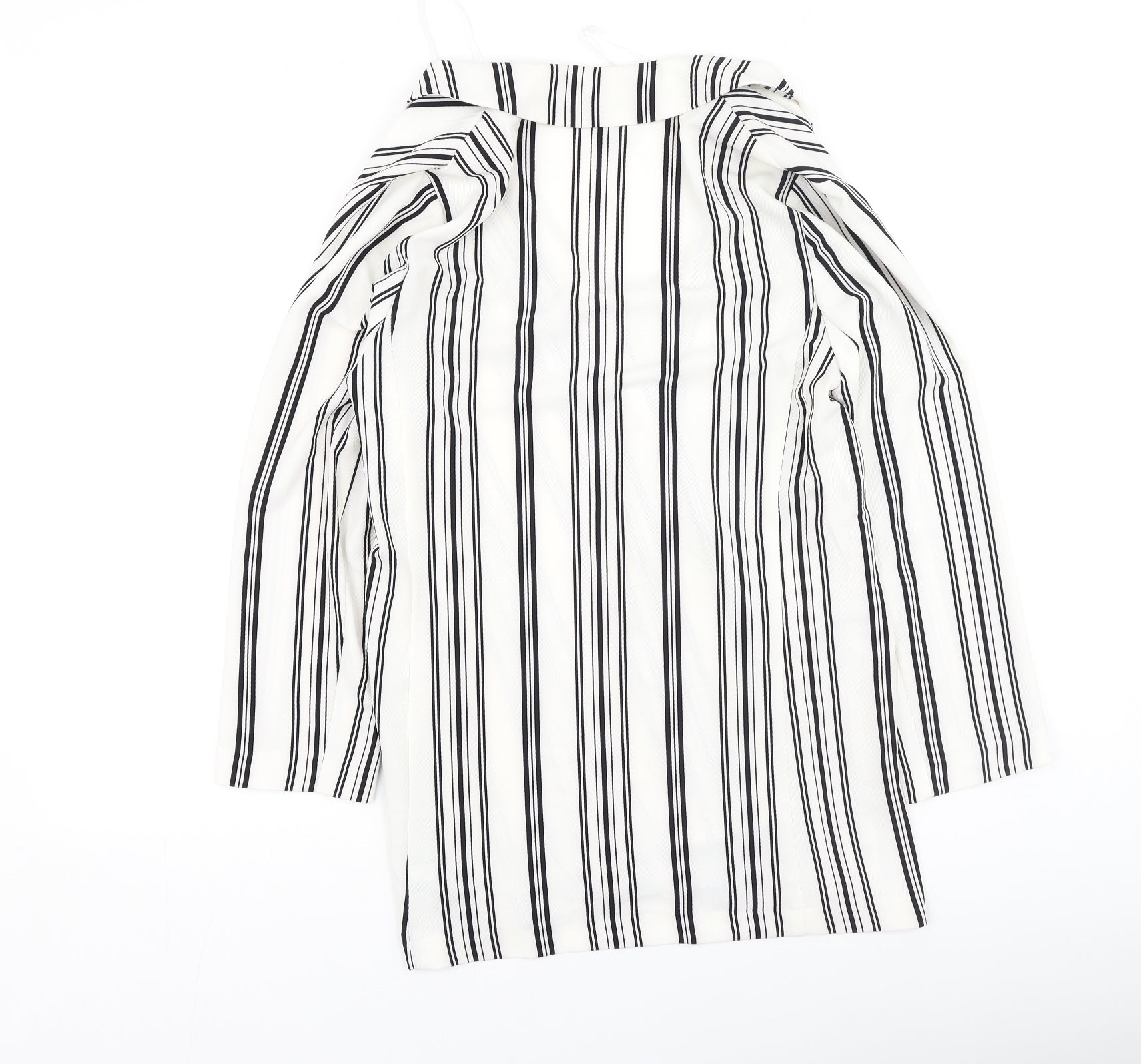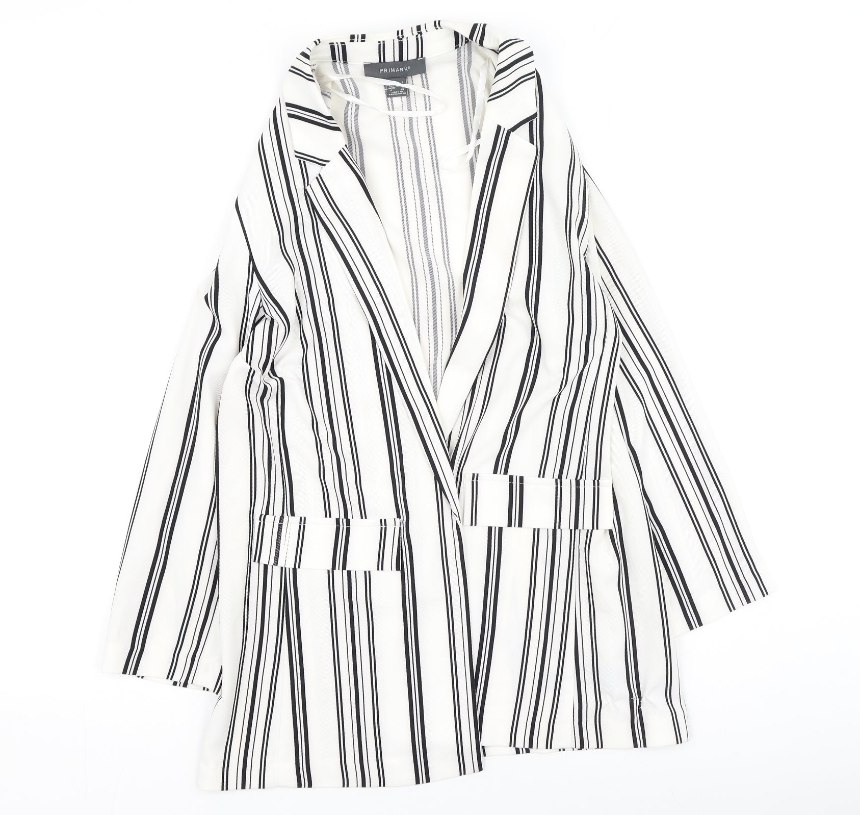 Primark Womens White V-Neck Striped Polyester Cardigan Jumper Size 8